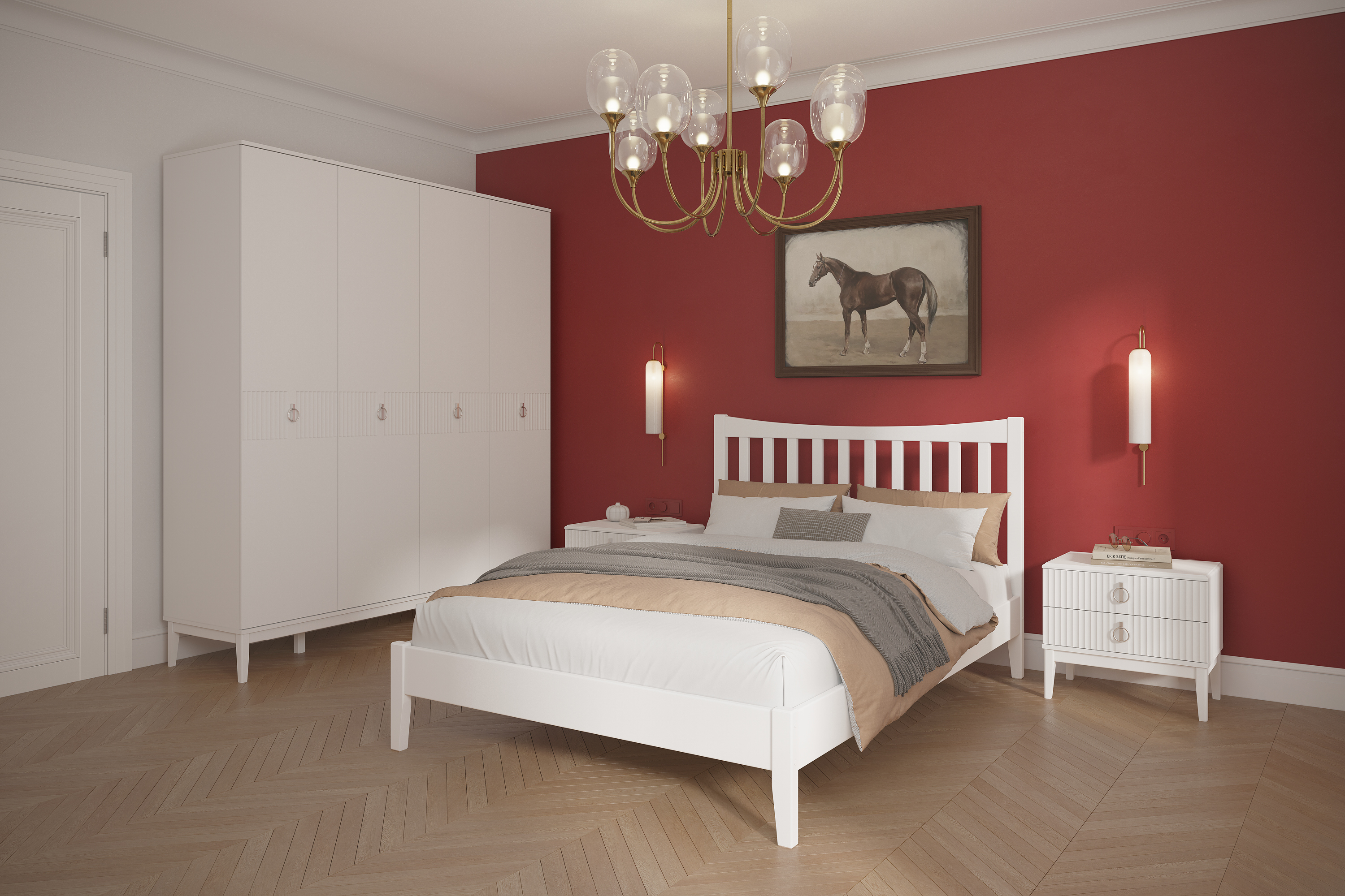 Фурнитура включает петли с доводчиками, обеспечивающие плавное и бесшумное закрывание дверей.