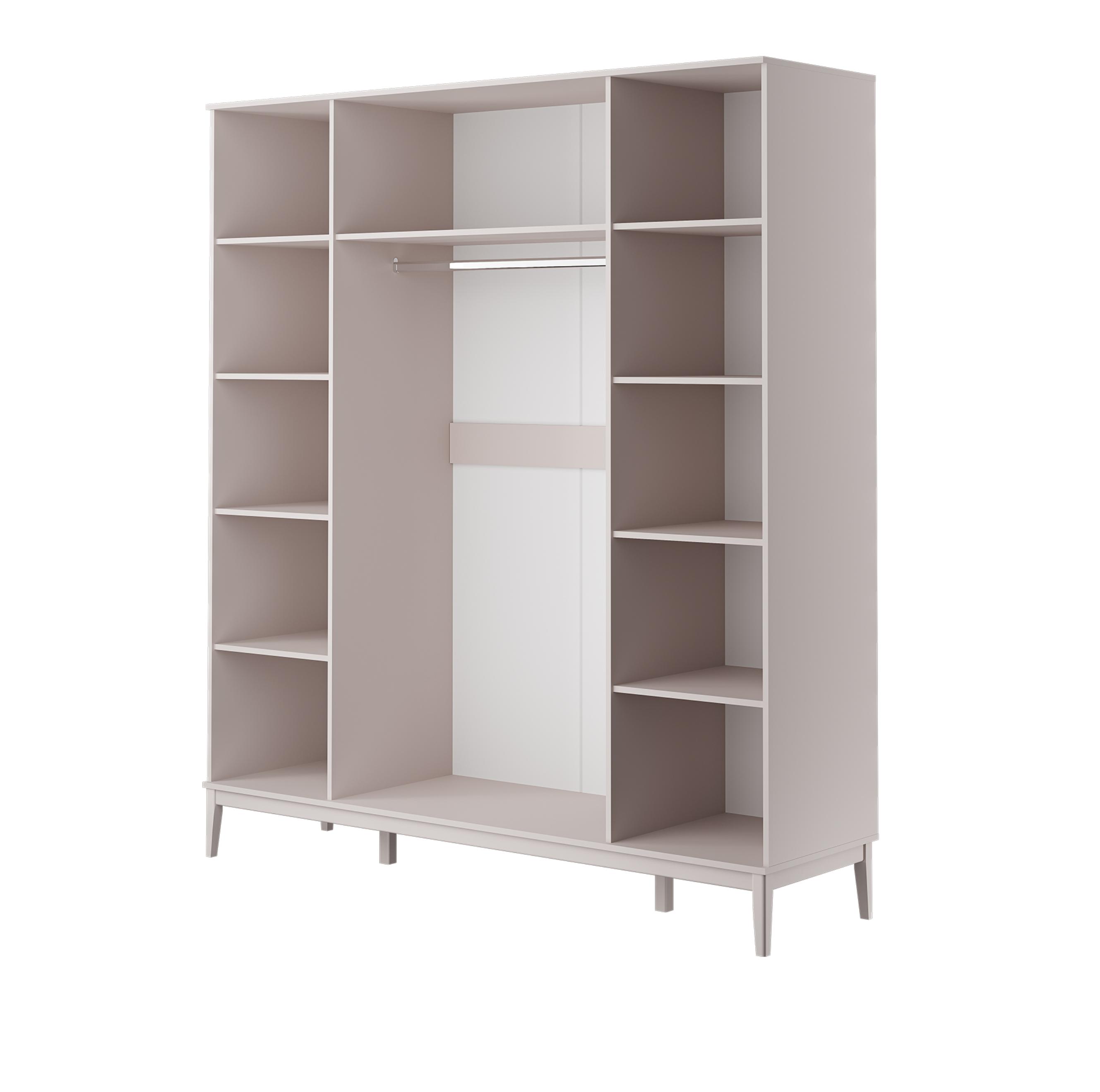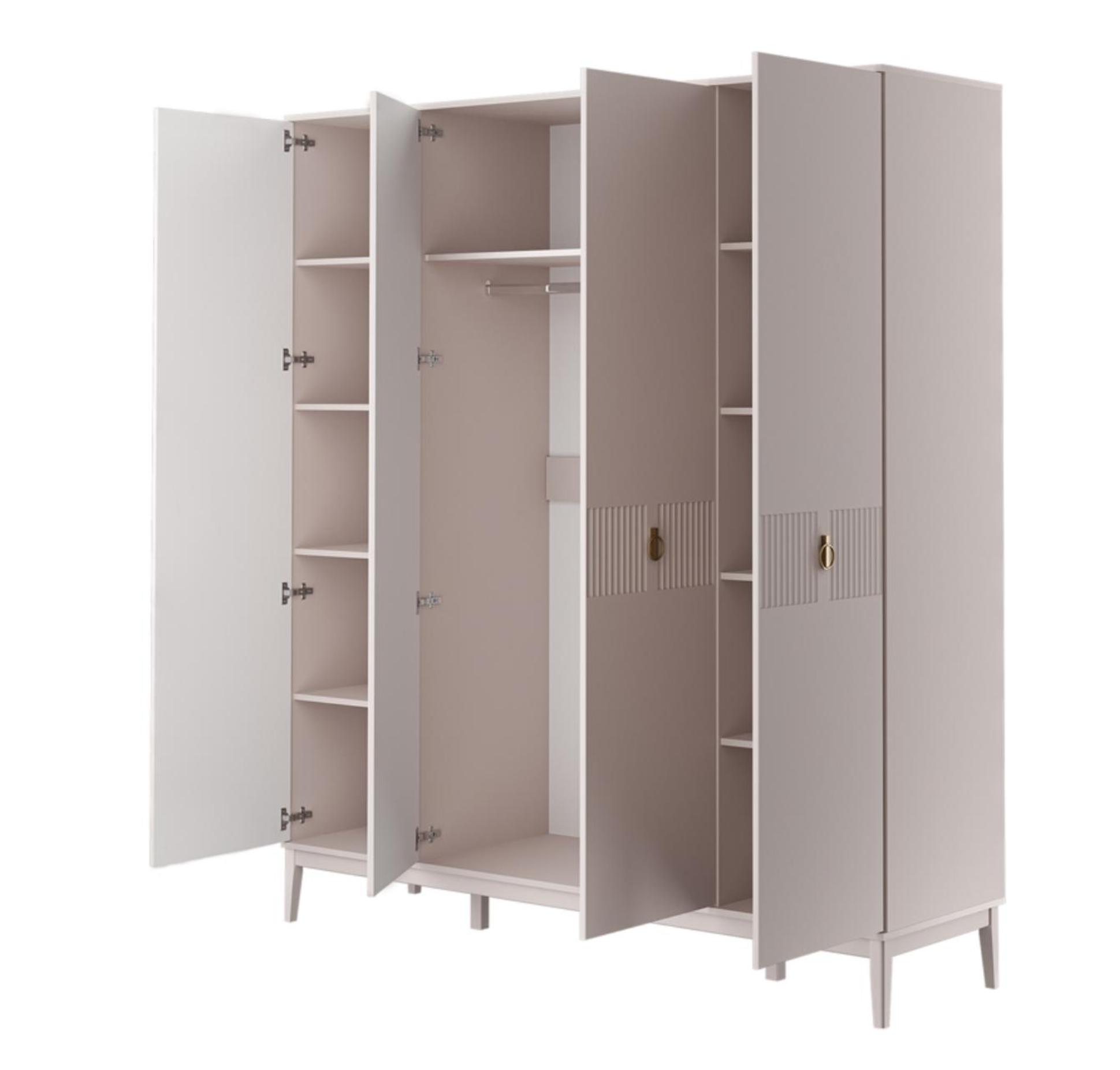 В середине шкафа расположена штанга для одежды, а по боковым секциям - полки для белья, что обеспечивает удобное хранение вещей.