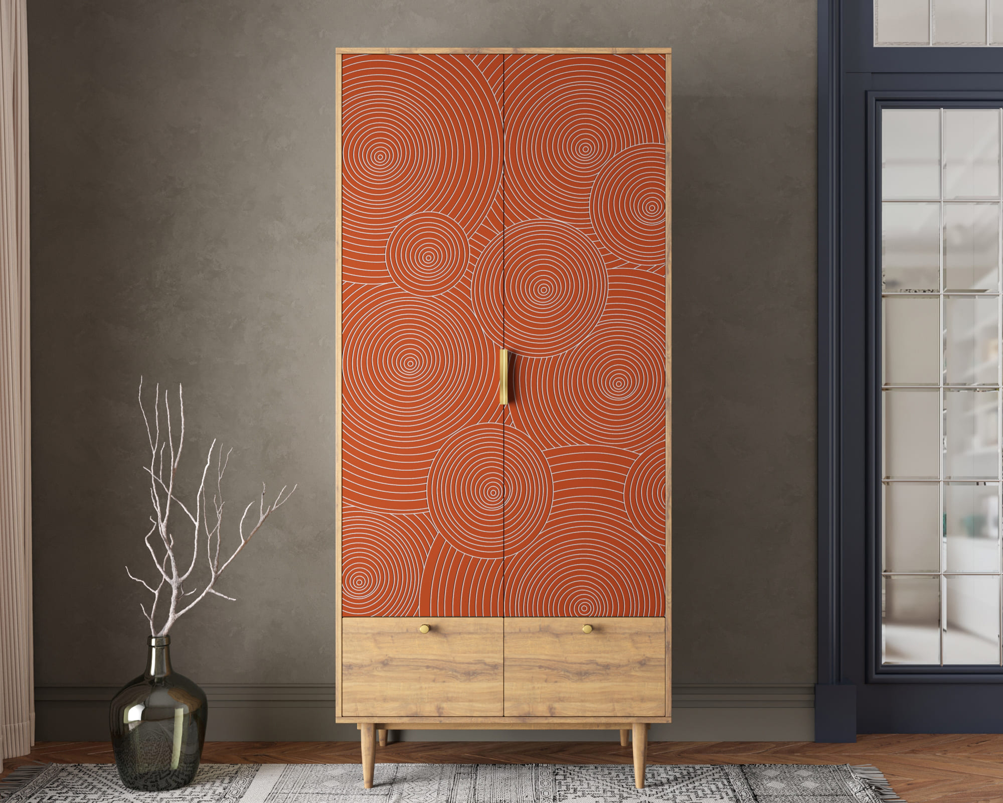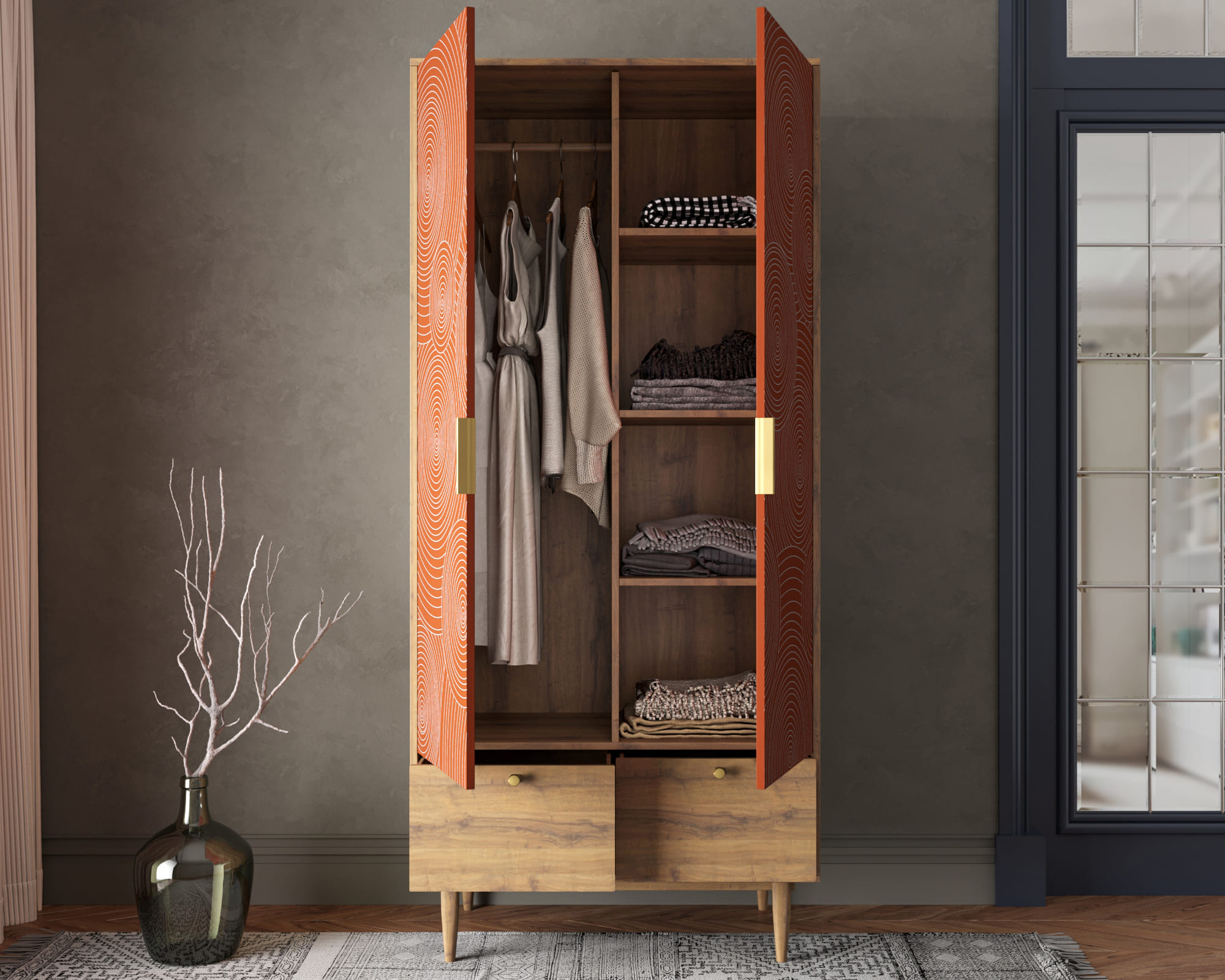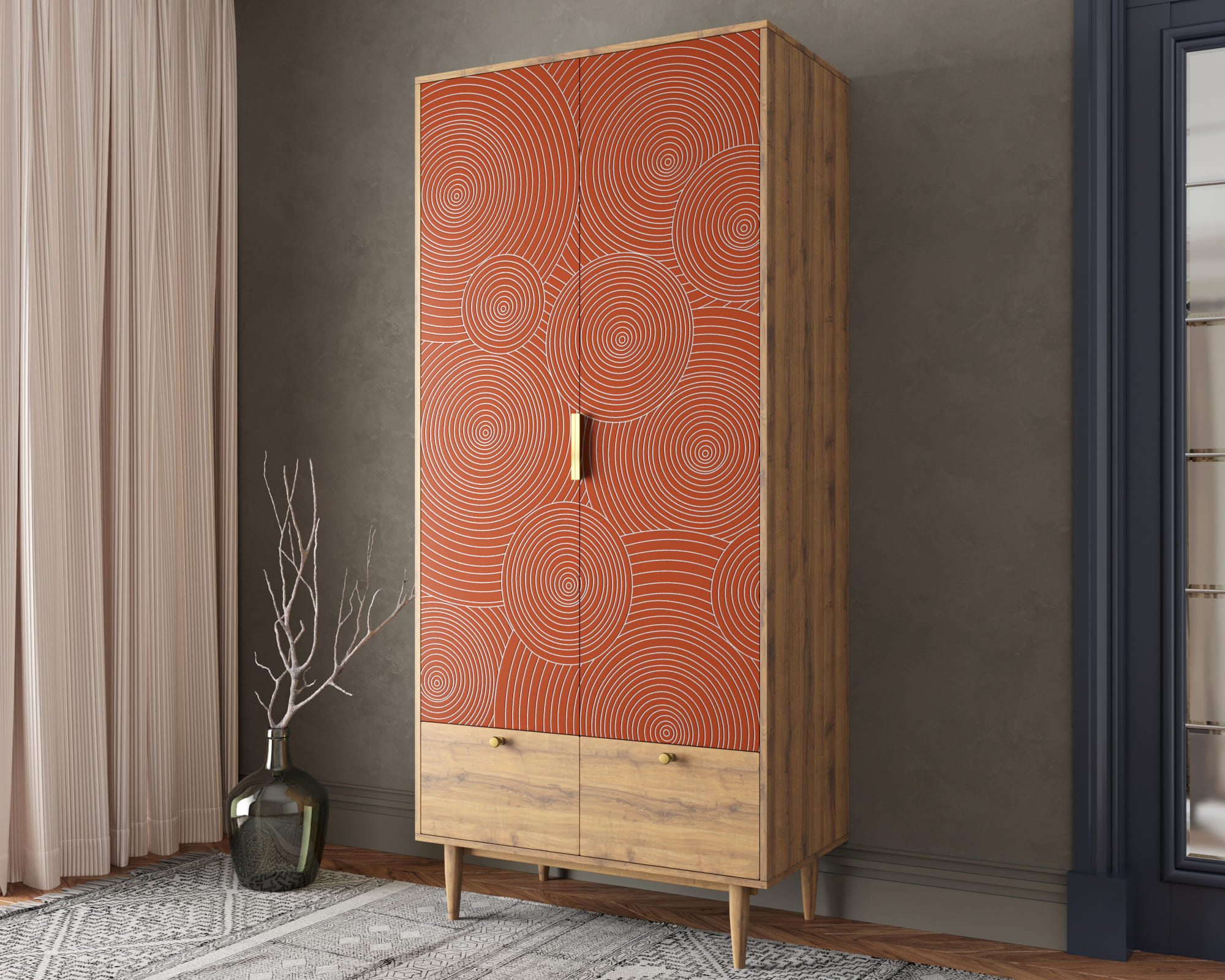 Изысканный дизайн в стиле ар-деко делает этот шкаф идеальным выбором для ценителей красоты и гармонии. Он сочетает в себе лёгкость и практичность, что позволяет ему гармонично вписаться в любой интерьер.