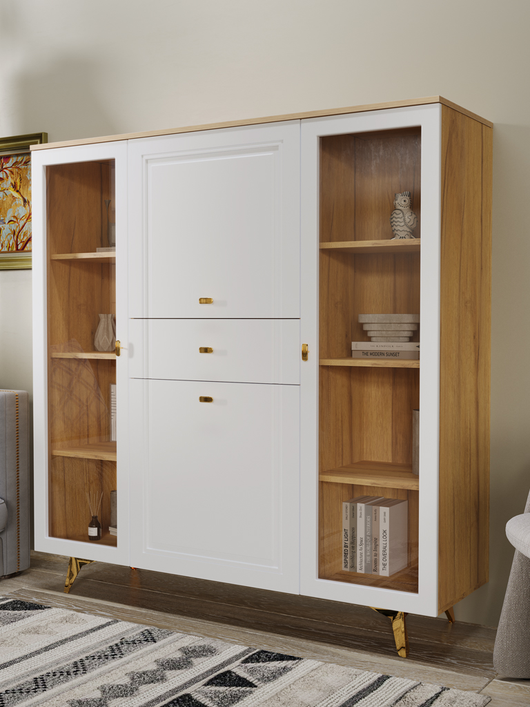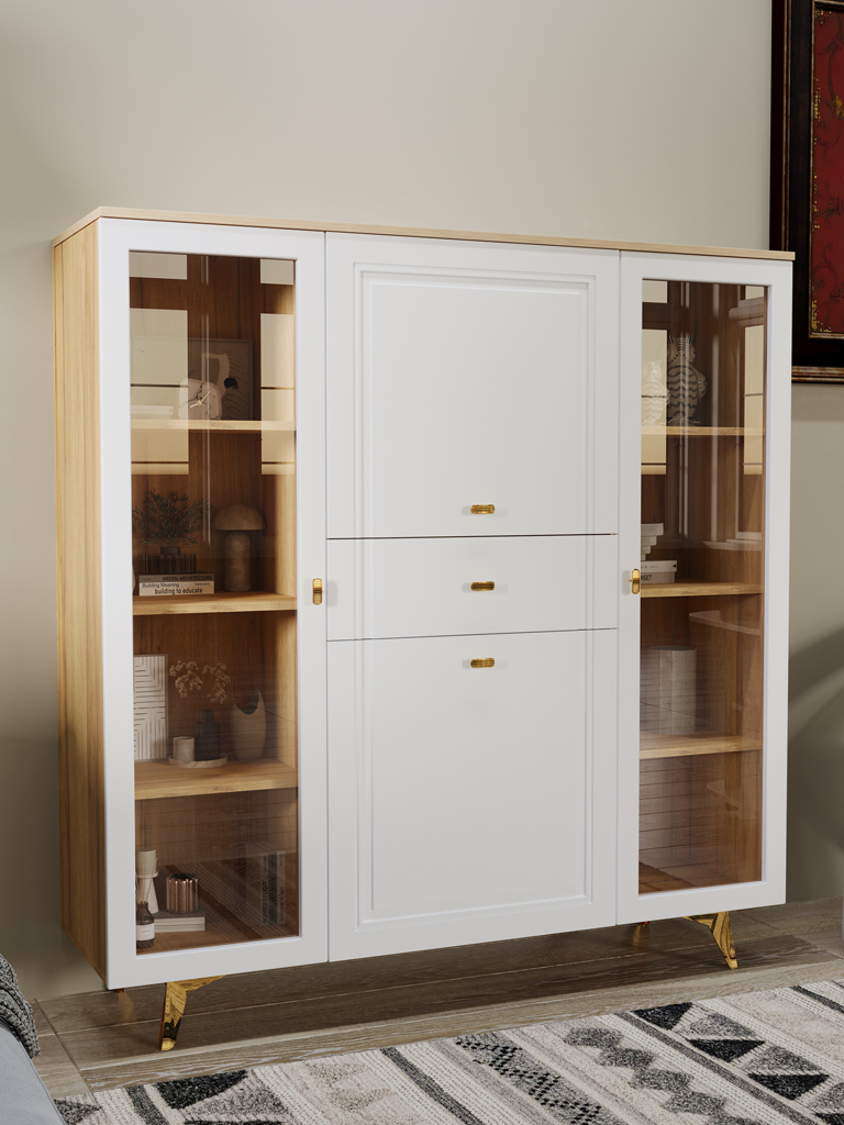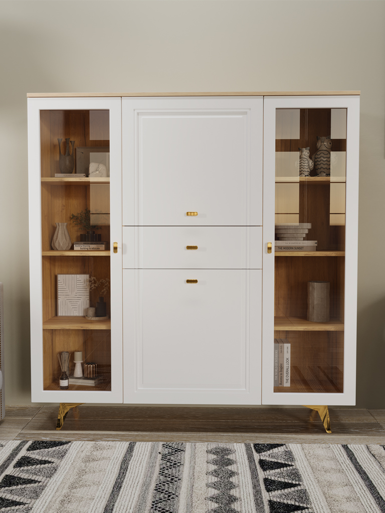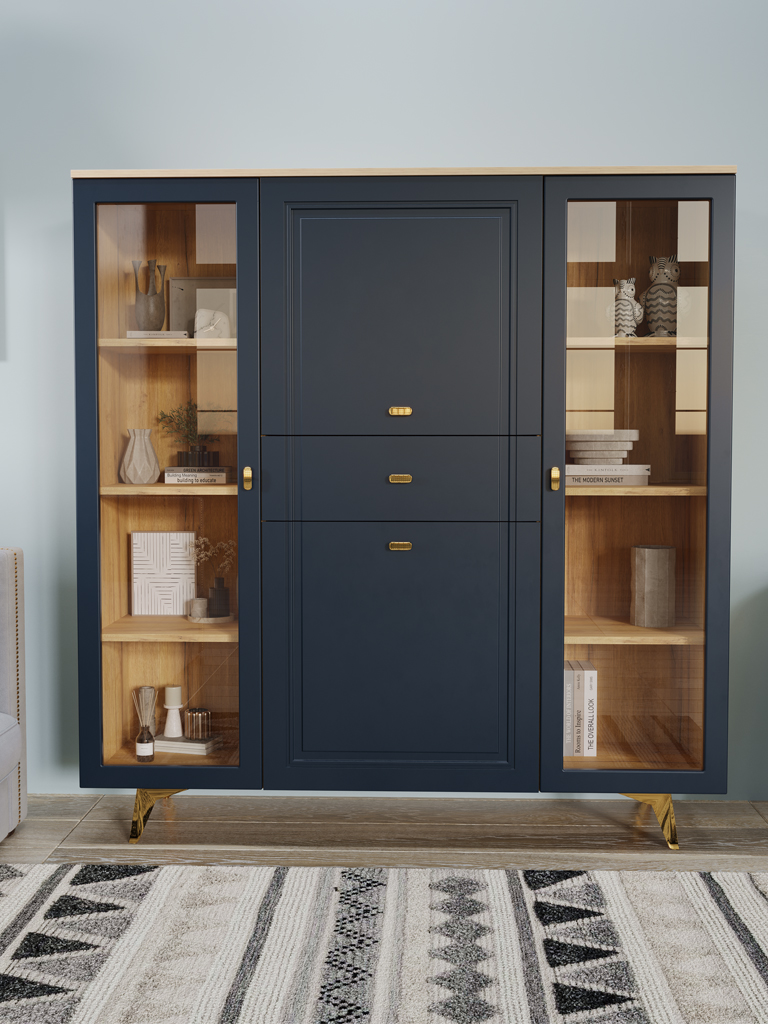 - Практичность. Стеклянные дверцы позволяют эффектно демонстрировать посуду, книги или декоративные предметы.