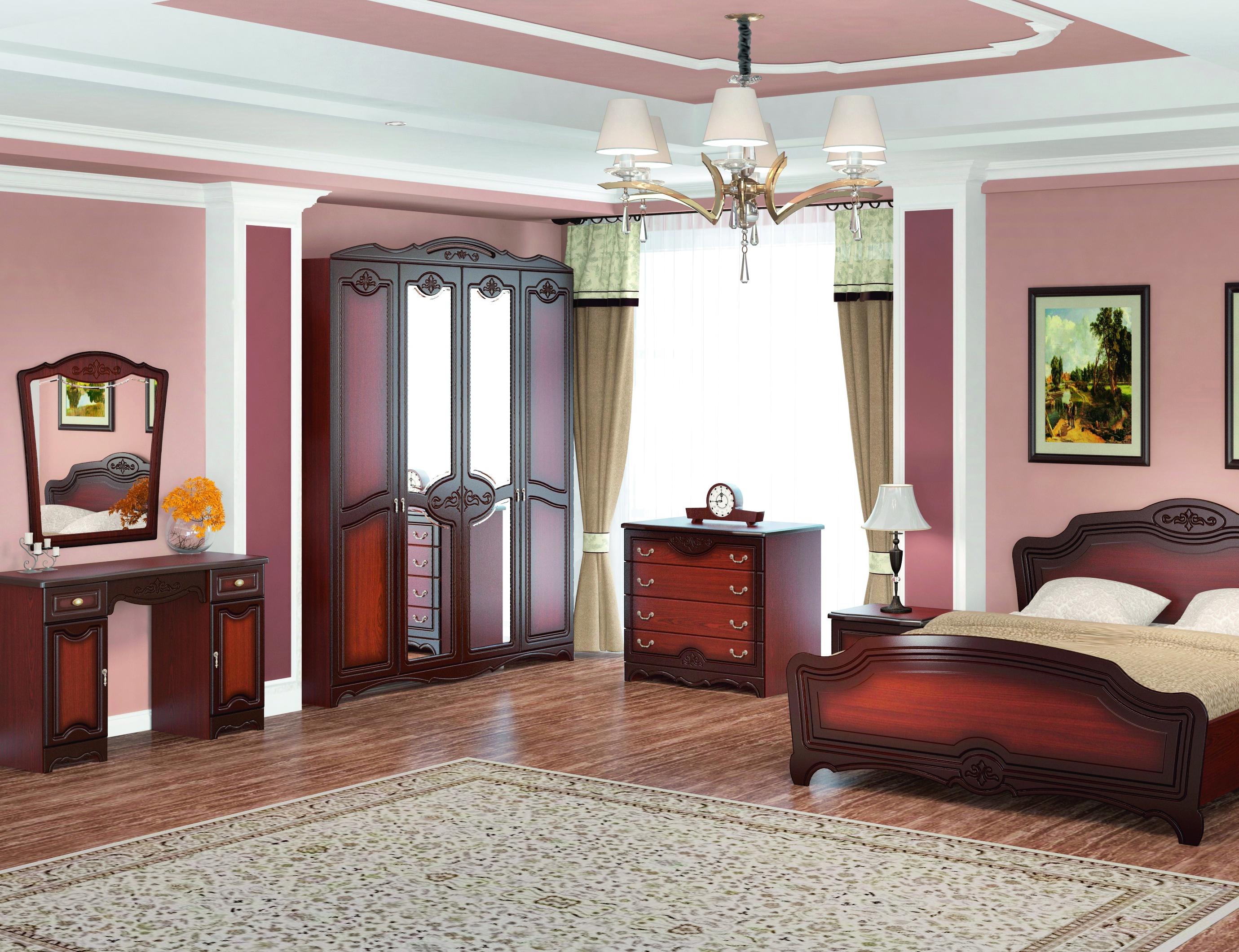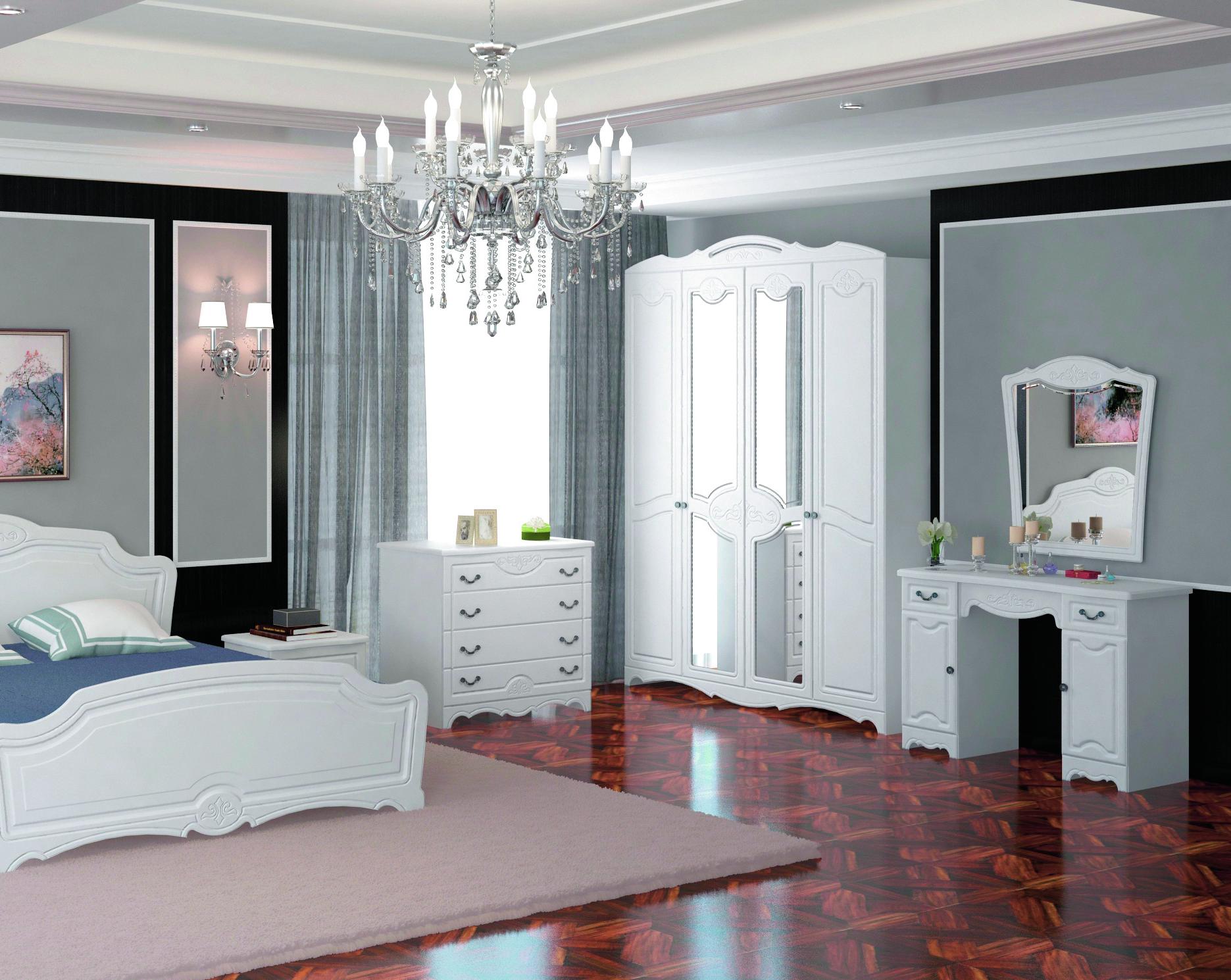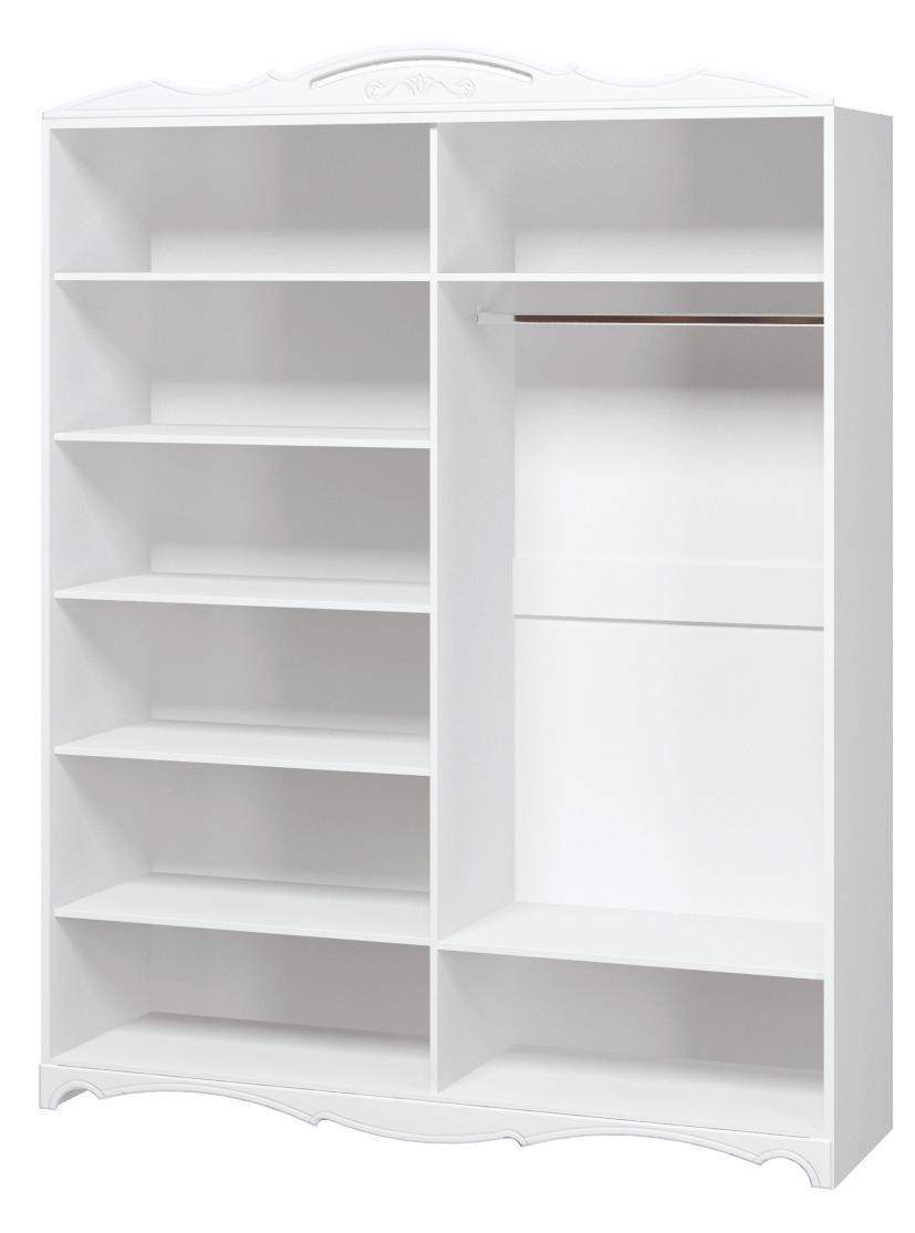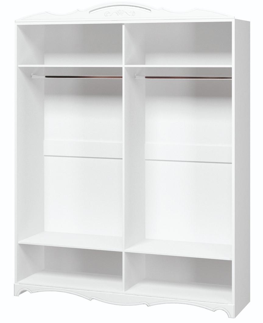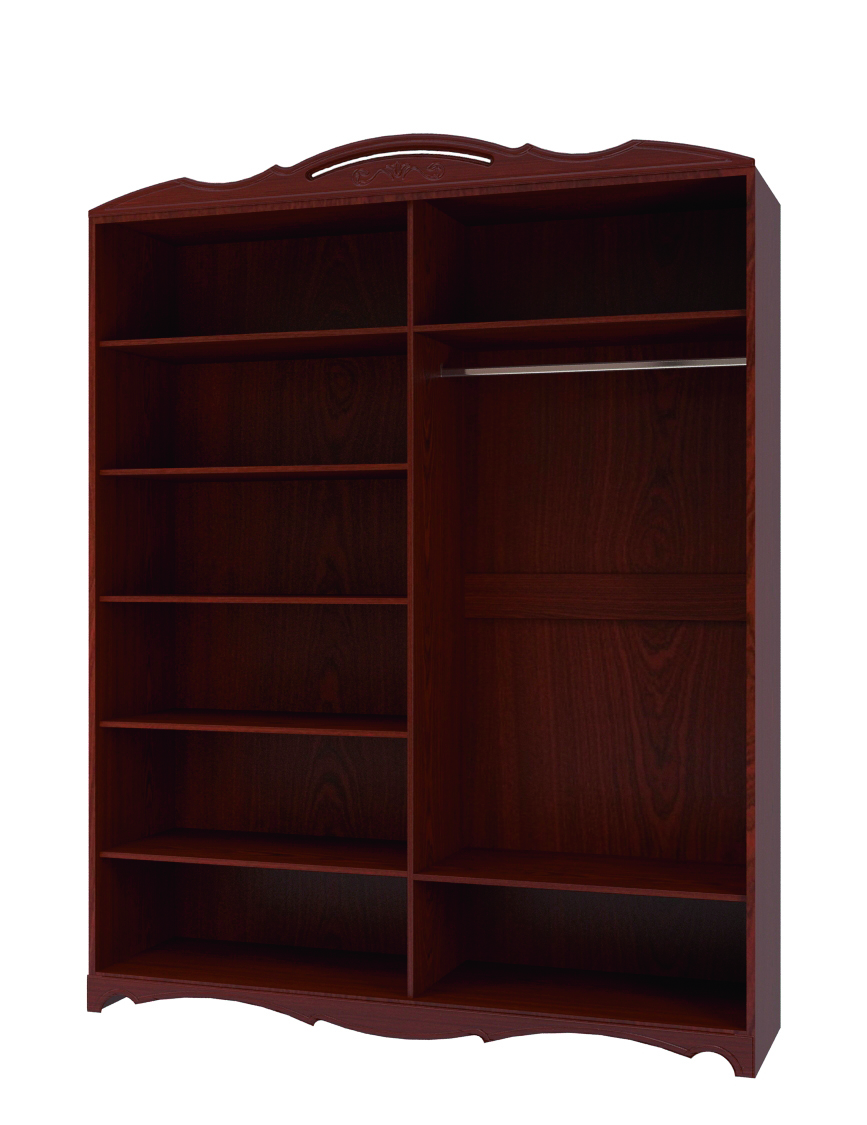Имеет 1/2 отделения с пятью полками для белья, 1/2 отделения со штангой для вешалок. Центральные двери с зеркалами без гравировки.