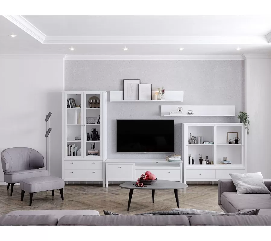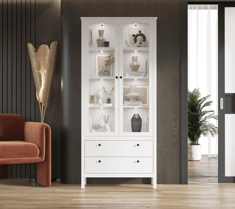 Витрину Ewa (Helga) всегда можно доукомплектовать любой белой мебелью из этой серии или из других коллекций.
