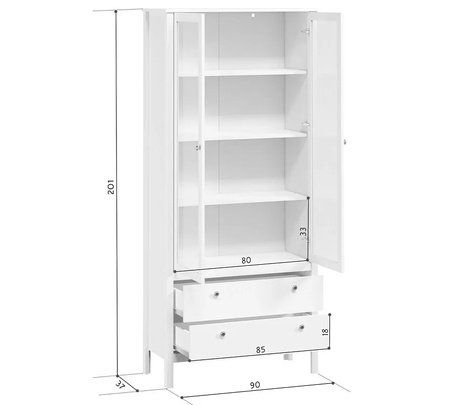 Надежная и устойчивая витрина белого цвета Ewa (Helga) изготовлена из ЛДСП/МДФ и оснащена европейской фурнитурой. Ее элегантные ручки серебристого цвета украшают фасады и обеспечивают удобный хват рукой. Роликовые направляющие в ящиках придают им плавный ход и потребуют минимальных усилий при открывании/закрывании. Распашные дверцы со стеклом и обеспечивают плотное примыкание и не позволят пыли проникнуть внутрь.