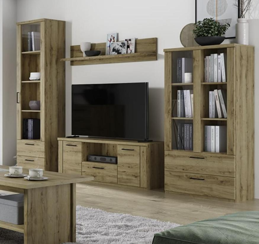 Утонченный европейский дизайн и цвет дуба наварра делает шкаф с витриной Doorset 1V2S3N заметной фигурой в интерьере. Толщина его корпуса составляет 16 мм, для защиты от сколов торцы оклеены пленкой ПВХ. Эта модель глубиной 41 см и шириной 80 см подойдет небольшим гостиным и рабочим кабинетам современного стиля. Ее можно использовать для хранения декора и любых красивых вещей. Они всегда будут на виду и не испортятся от внешнего воздействия.