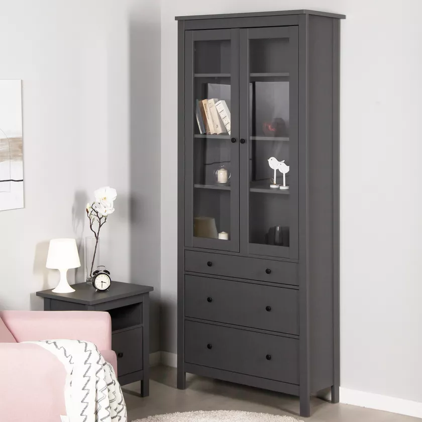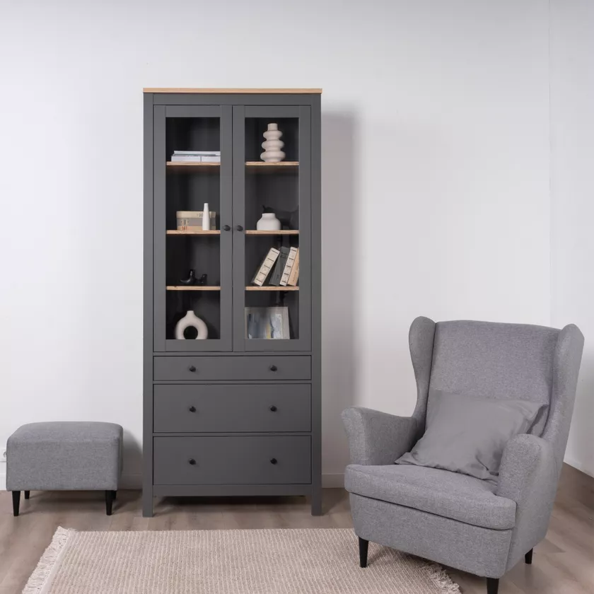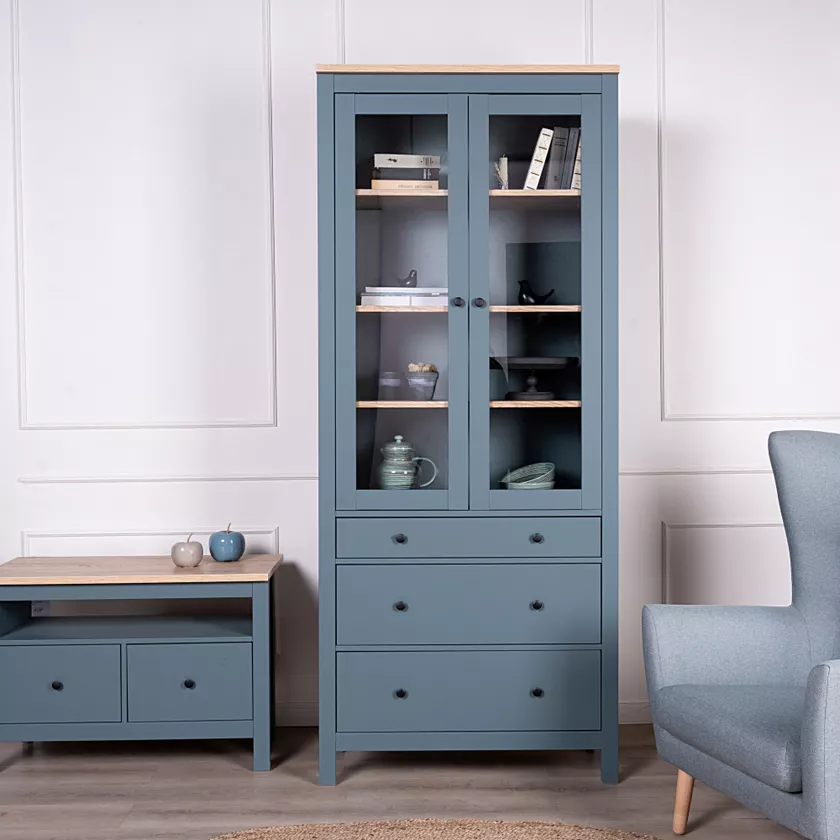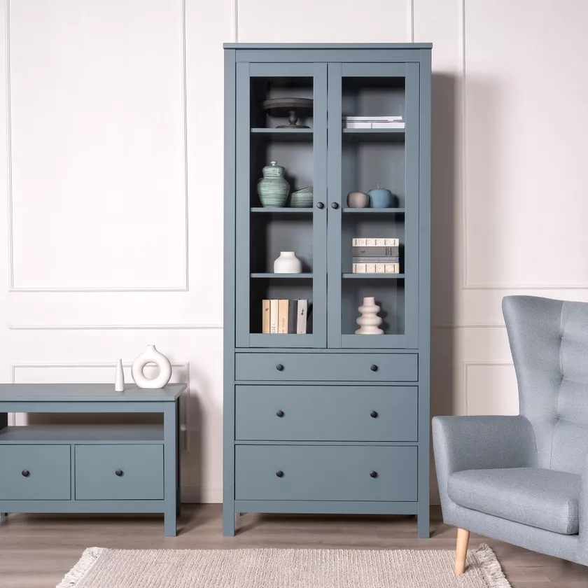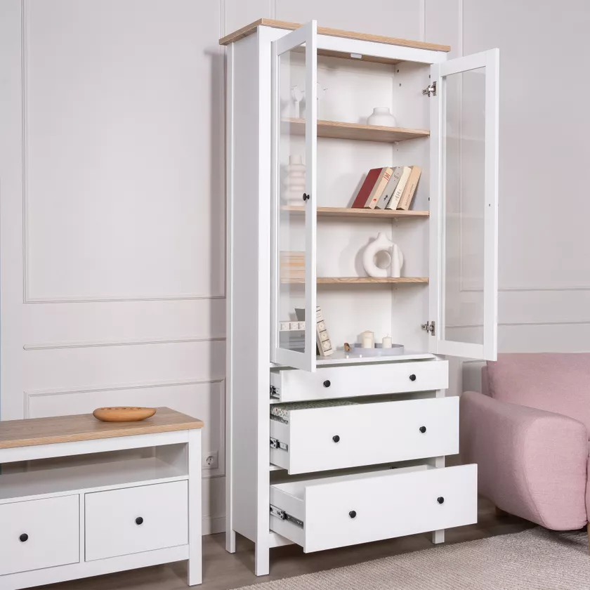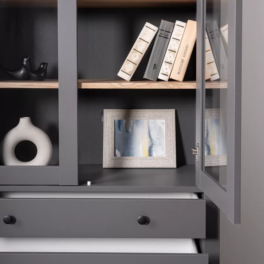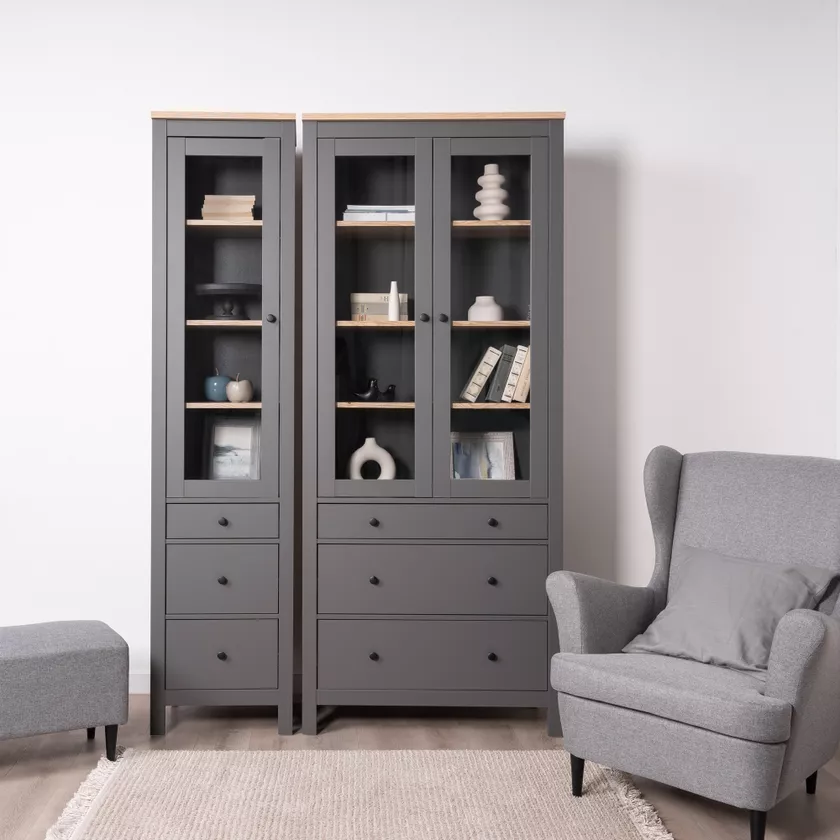 Две распашные дверцы со стеклом обеспечивают удобный доступ к содержимому шкафа и создают привлекательный внешний вид.