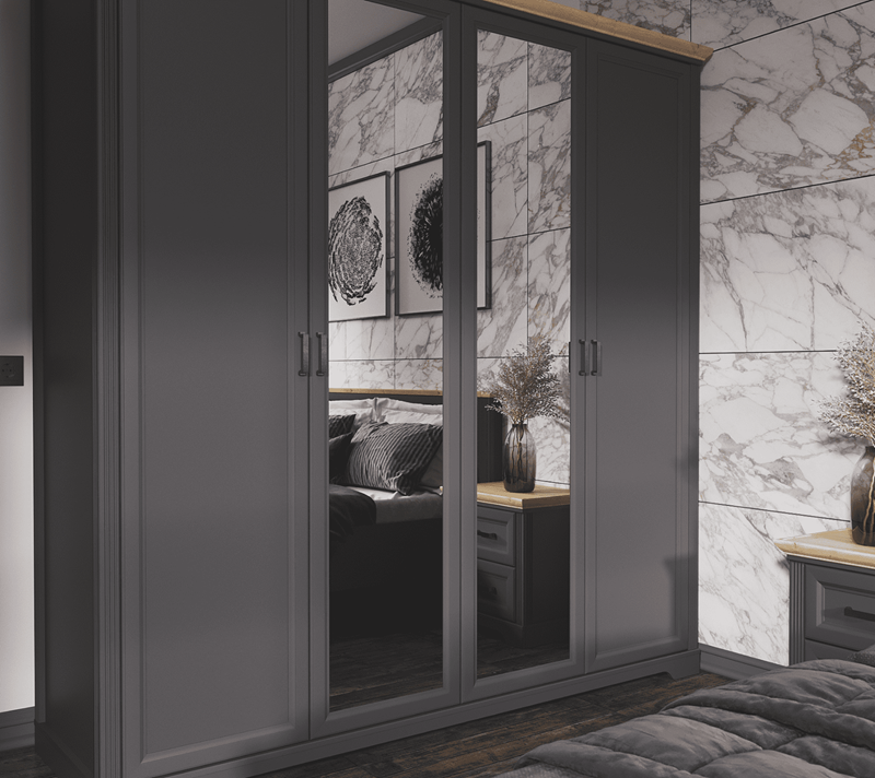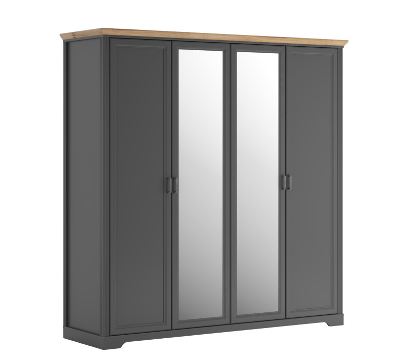 Распашной шкаф с 4-мя створками и зеркалом Jasmin графит/дуб артизан SZF2L2D достойно займет свое место в вашей спальне.