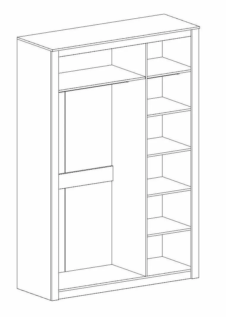 Шкаф имеет просторную секцию со штангой для одежды на плечиках с верхней полкой и вертикальный ряд достаточно глубоких, вместительных полок. На двери шкафа есть зеркало, которое позволяет увидеть себя в полный рост и проверить свой образ перед выходом. Это особенно удобно для тех, кто собирается на работу или мероприятие.