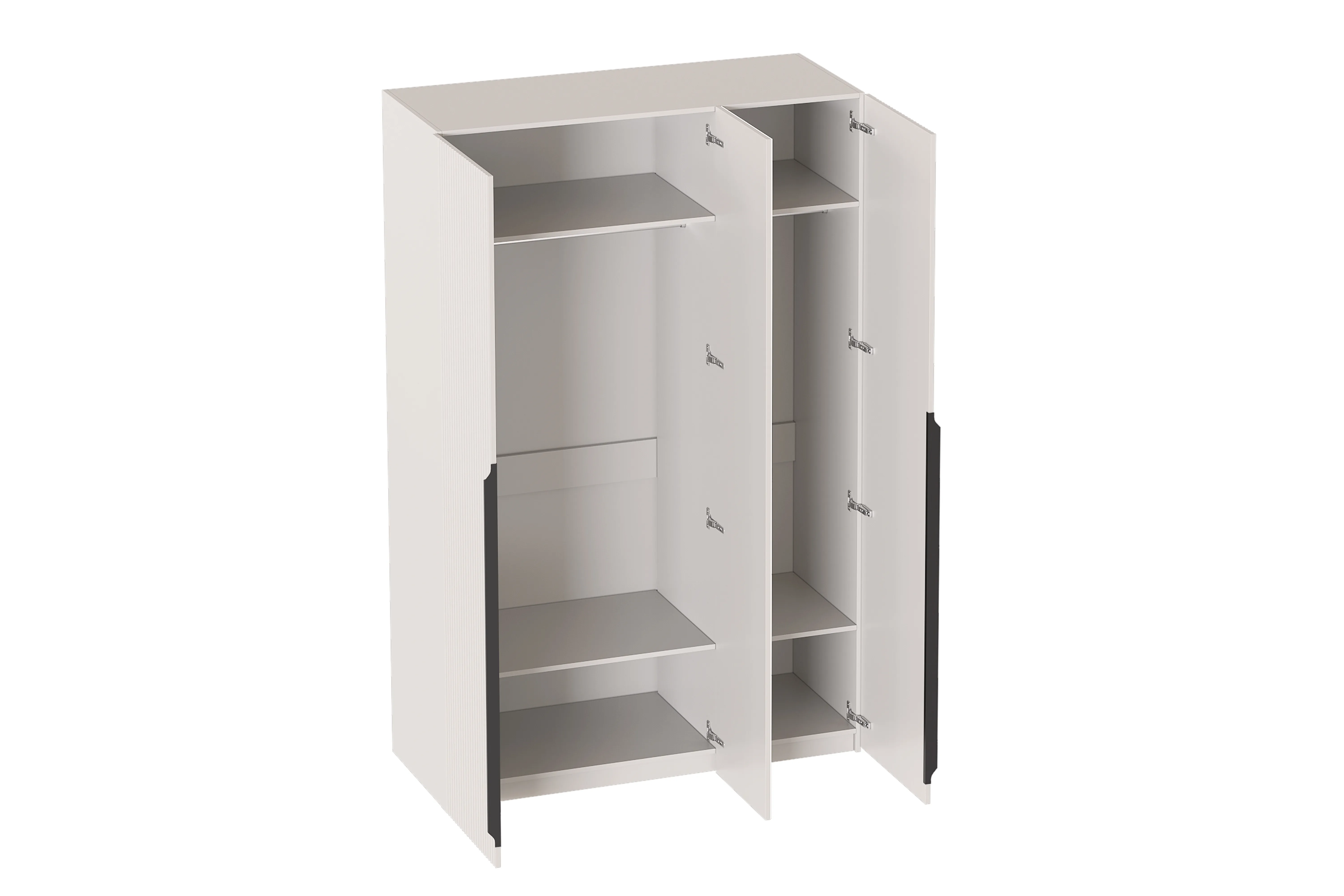 Шкаф имеет просторную секцию со штангой для одежды на плечиках с верхней полкой и вертикальный ряд достаточно глубоких, вместительных полок. На двери шкафа есть зеркало, которое позволяет увидеть себя в полный рост и проверить свой образ перед выходом. Это особенно удобно для тех, кто собирается на работу или мероприятие.