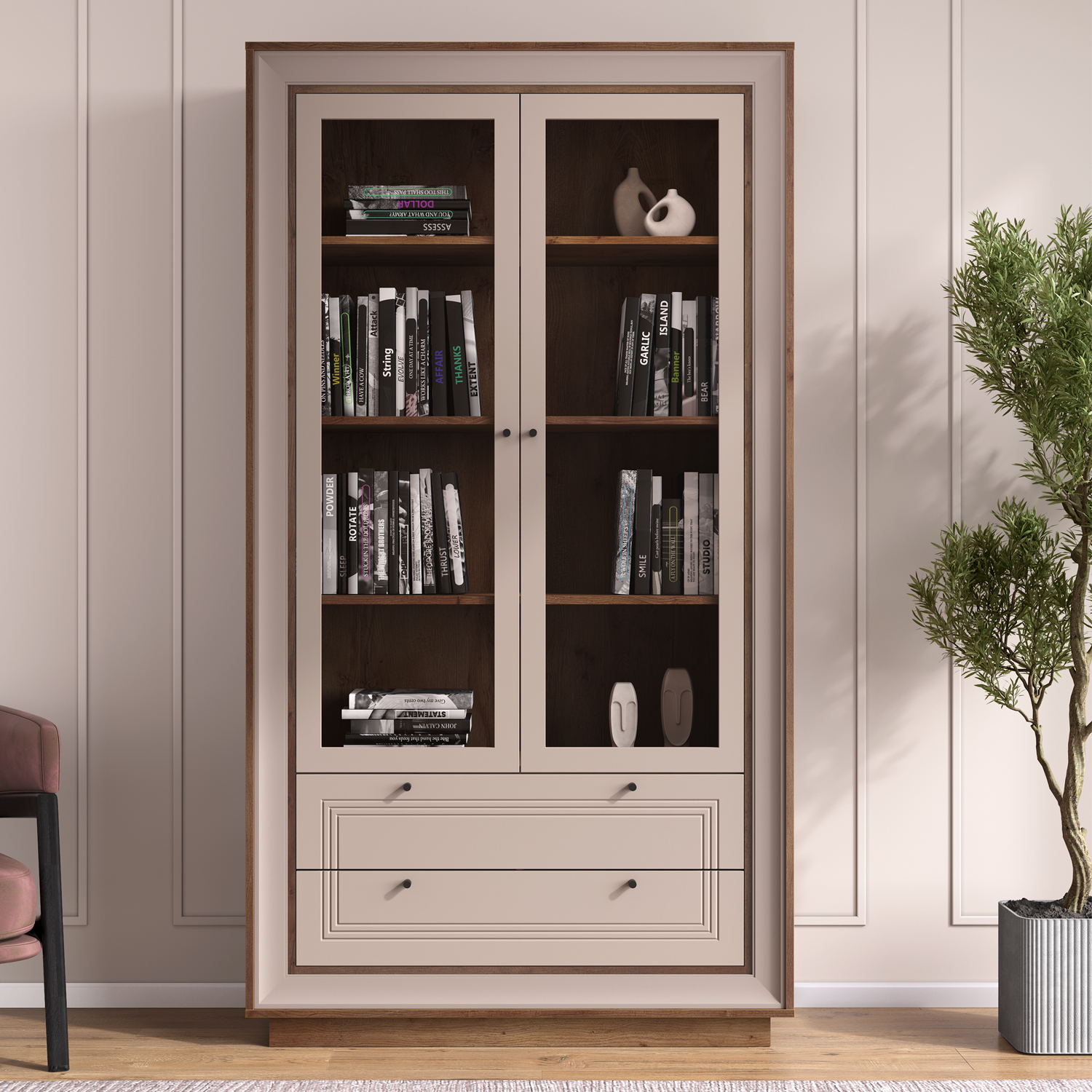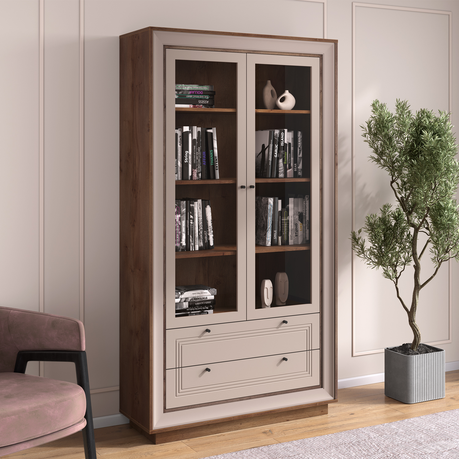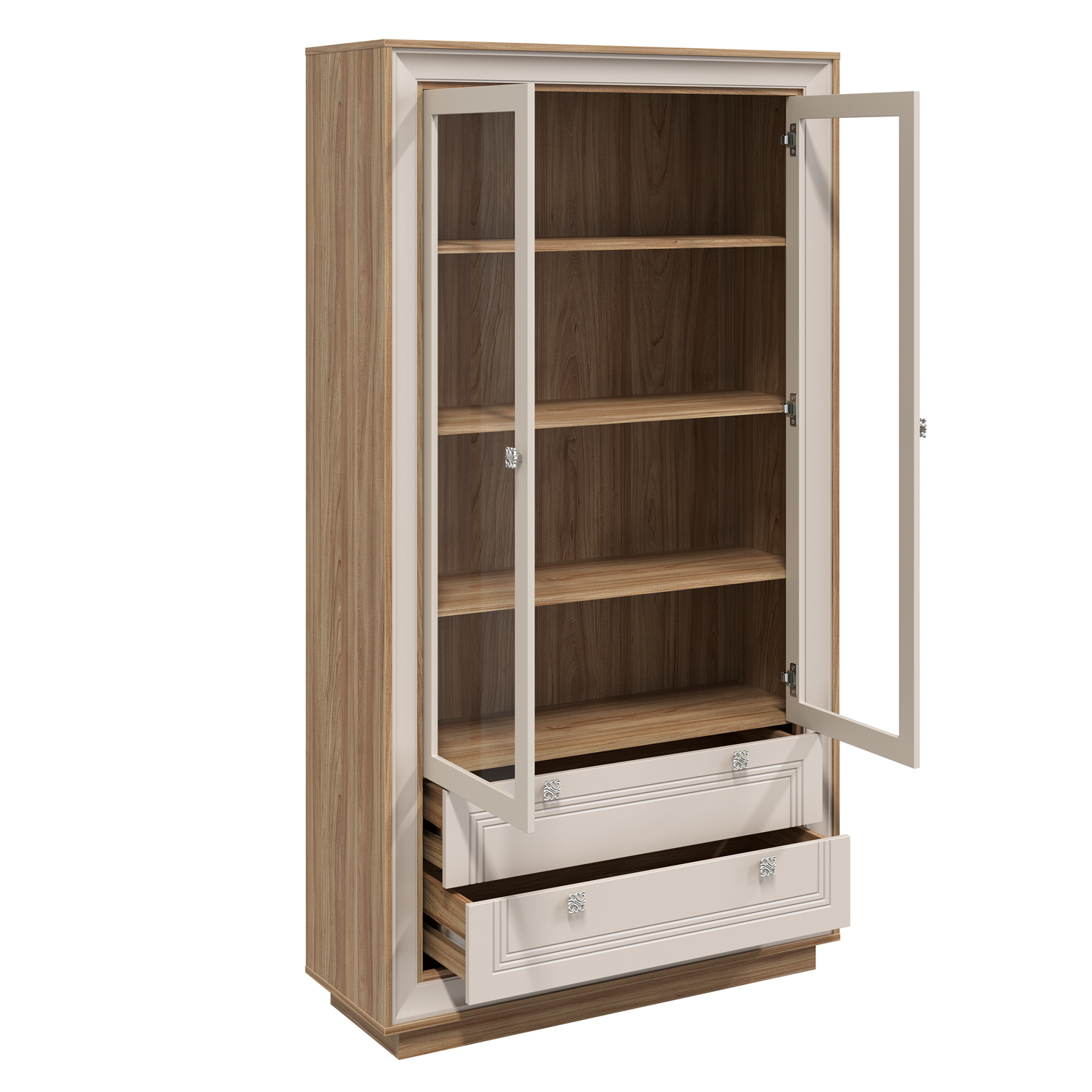 Современный Шкаф-витрина 2-х дверный Прато сочетает функциональность, эргономику и актуальный дизайн, становясь практичным элементом любого интерьера.