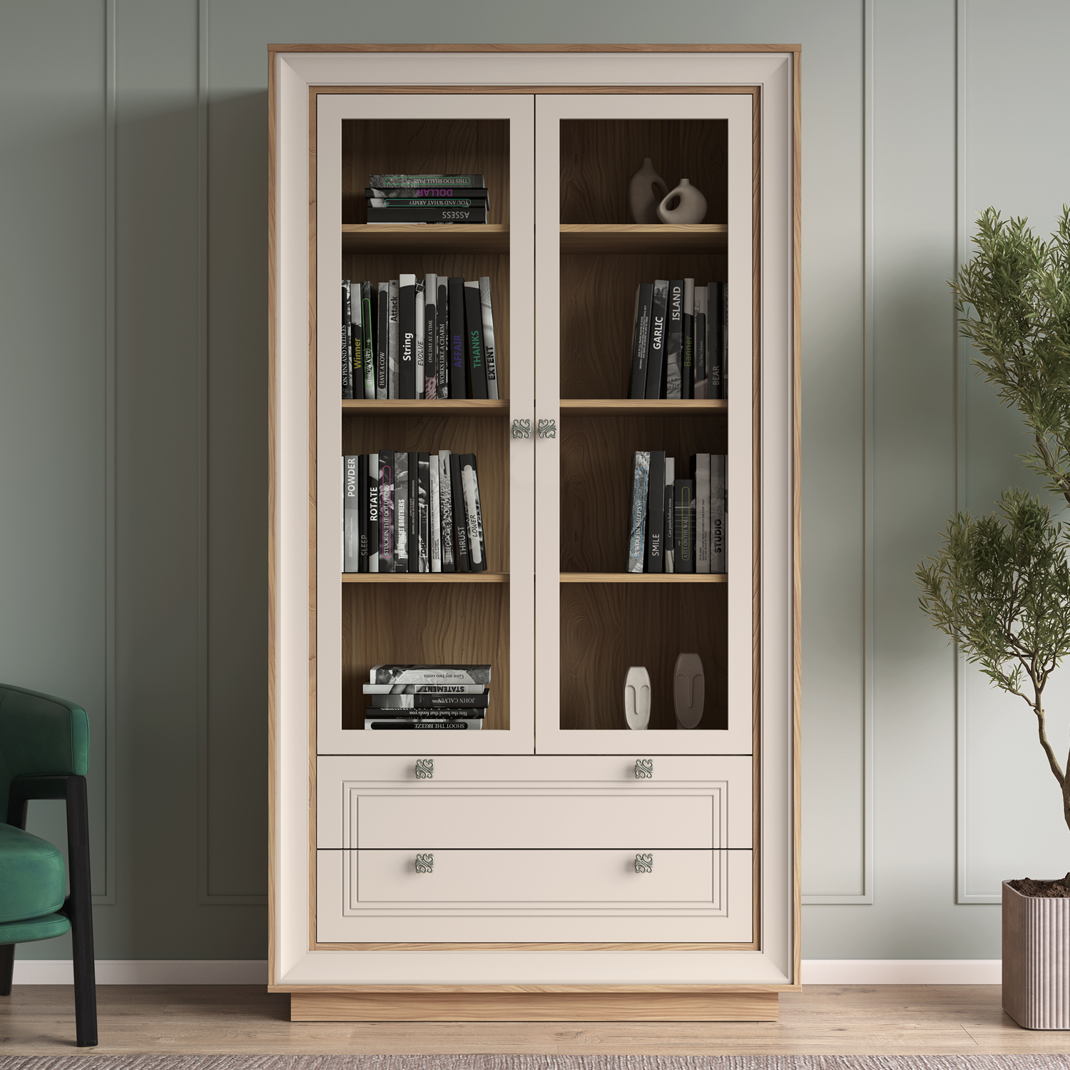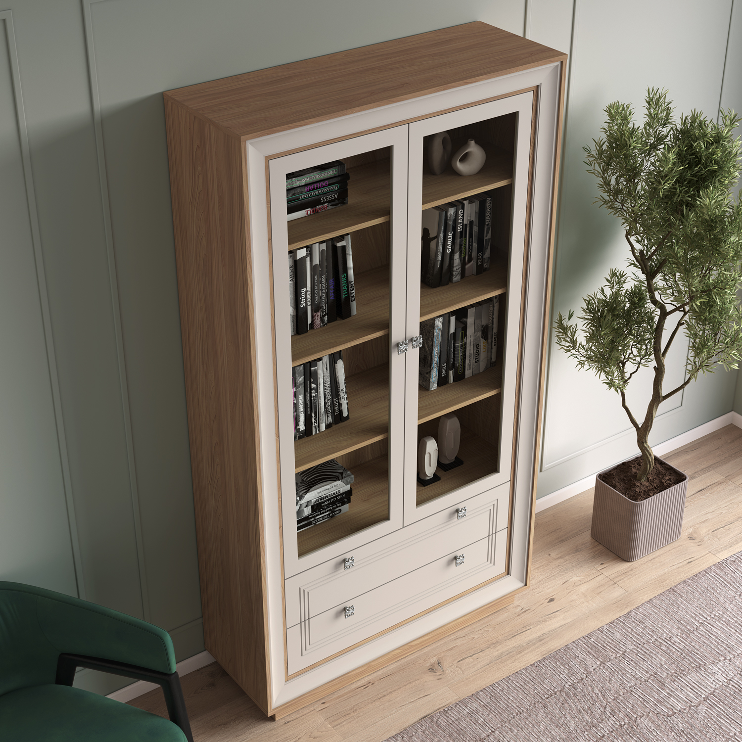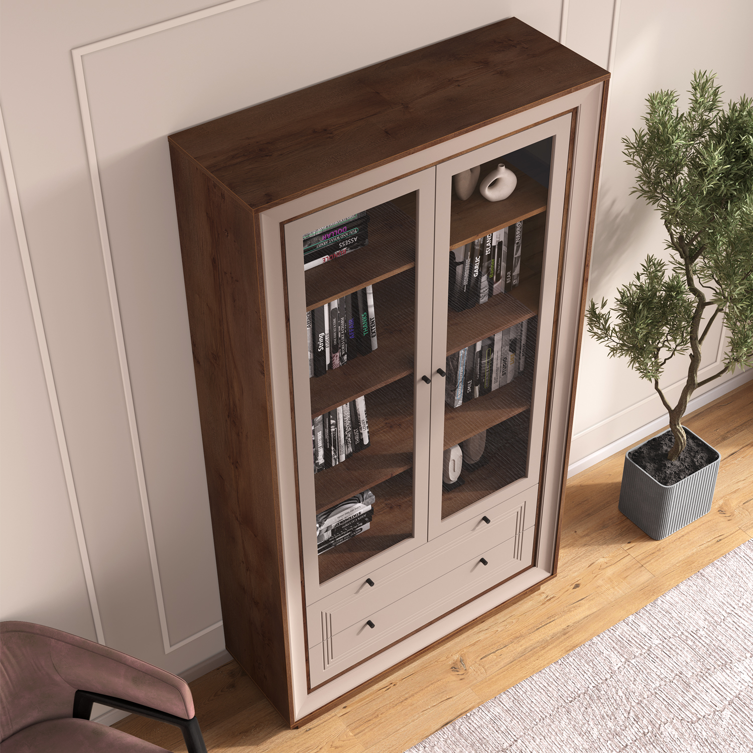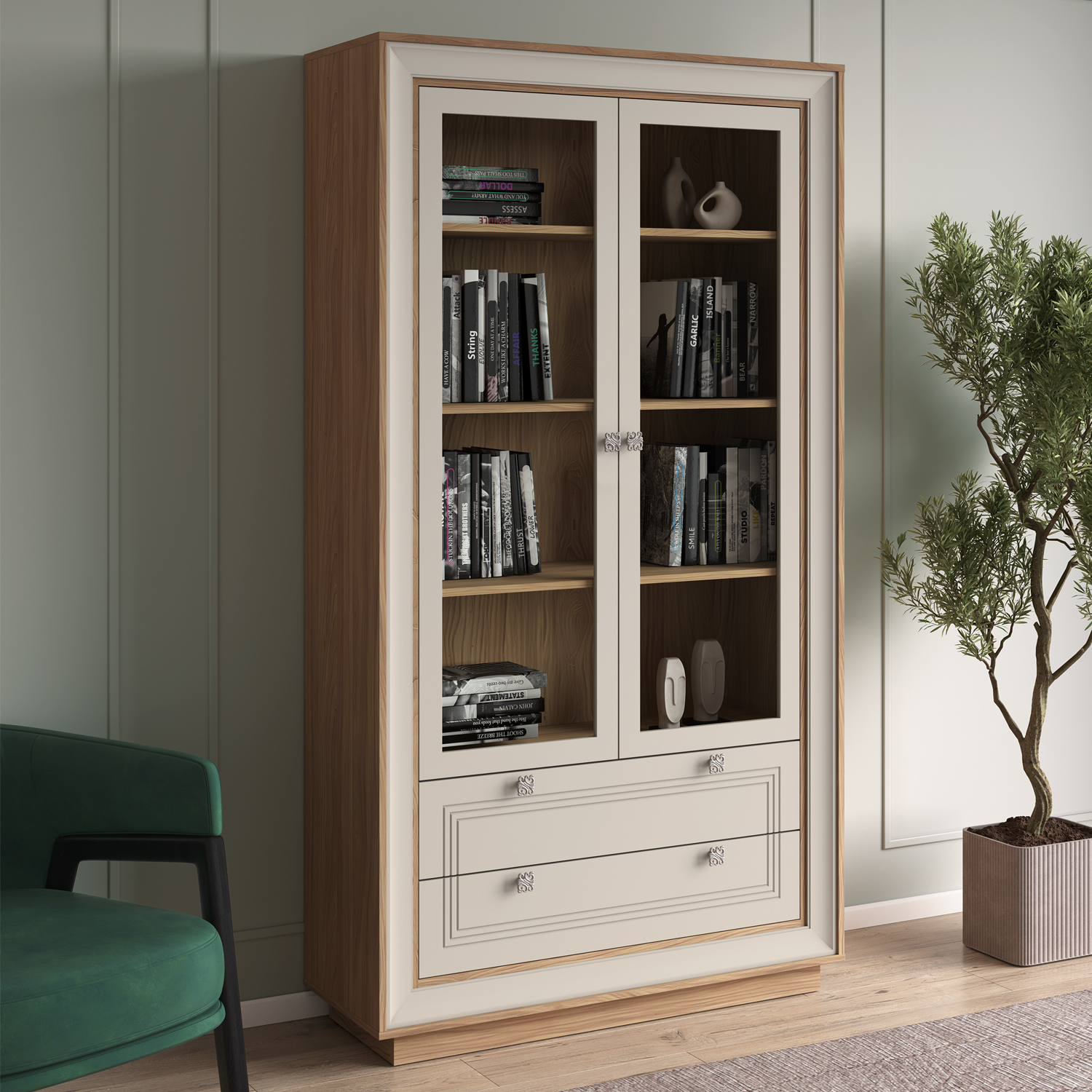 Современный Шкаф-витрина 2-х дверный Прато сочетает функциональность, эргономику и актуальный дизайн, становясь практичным элементом любого интерьера.