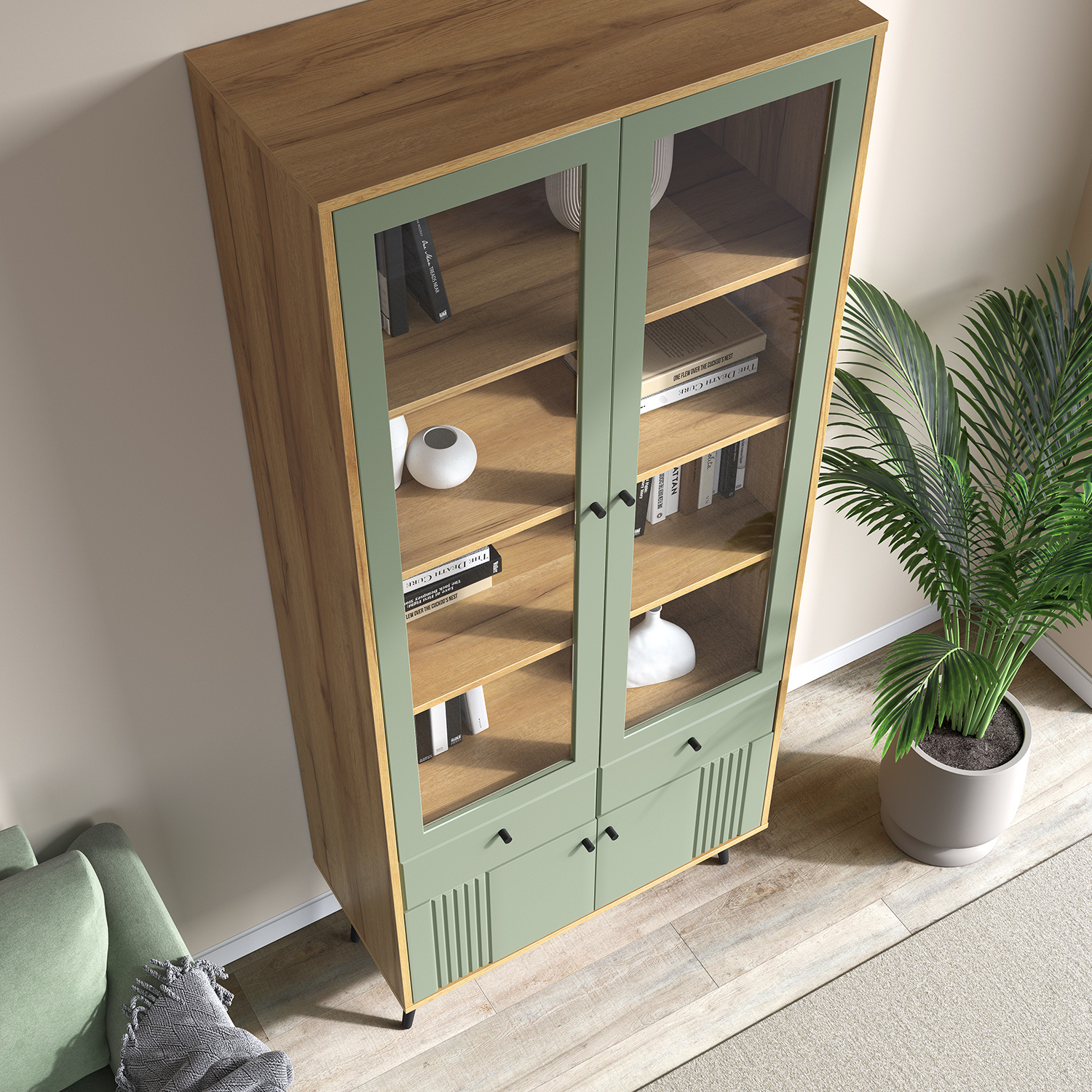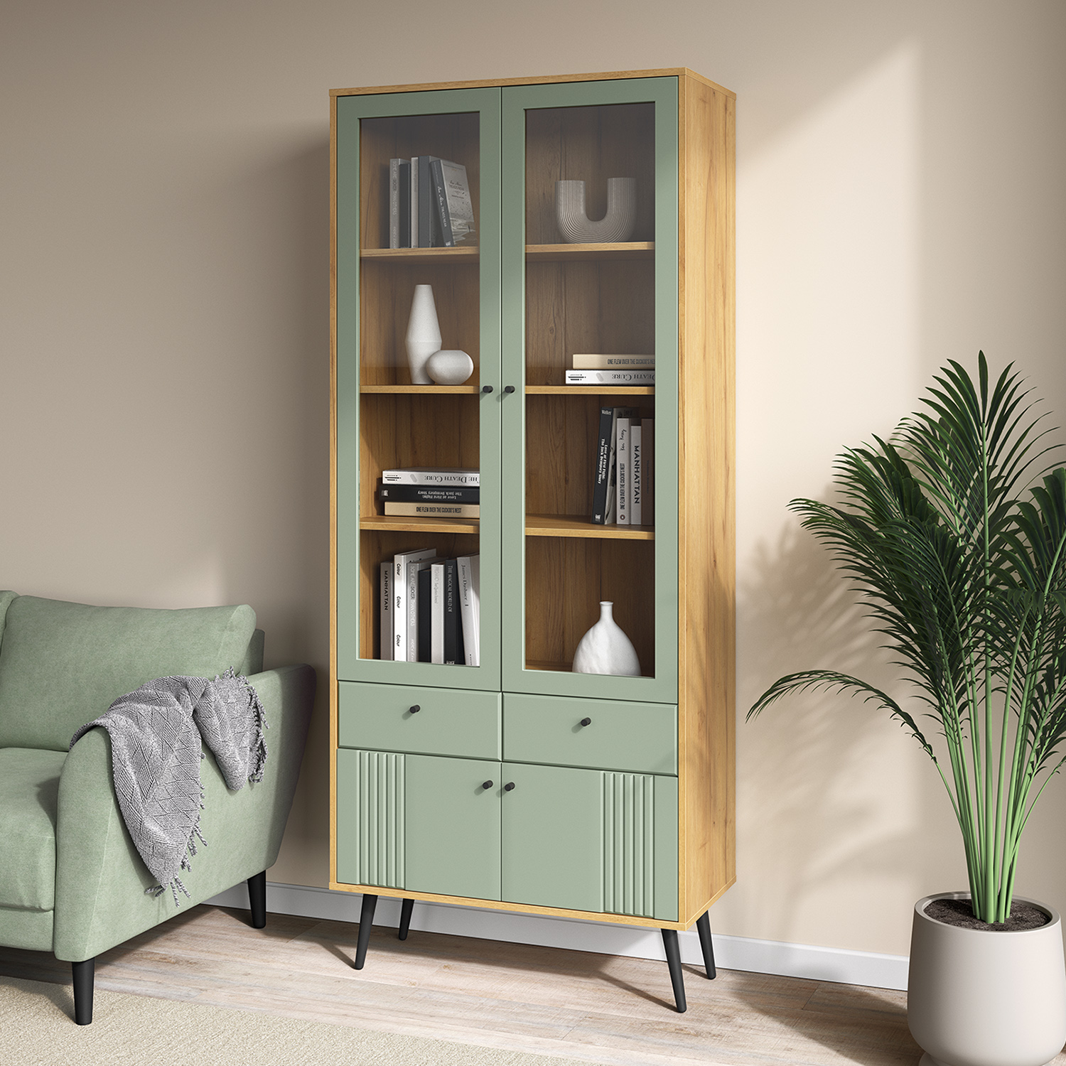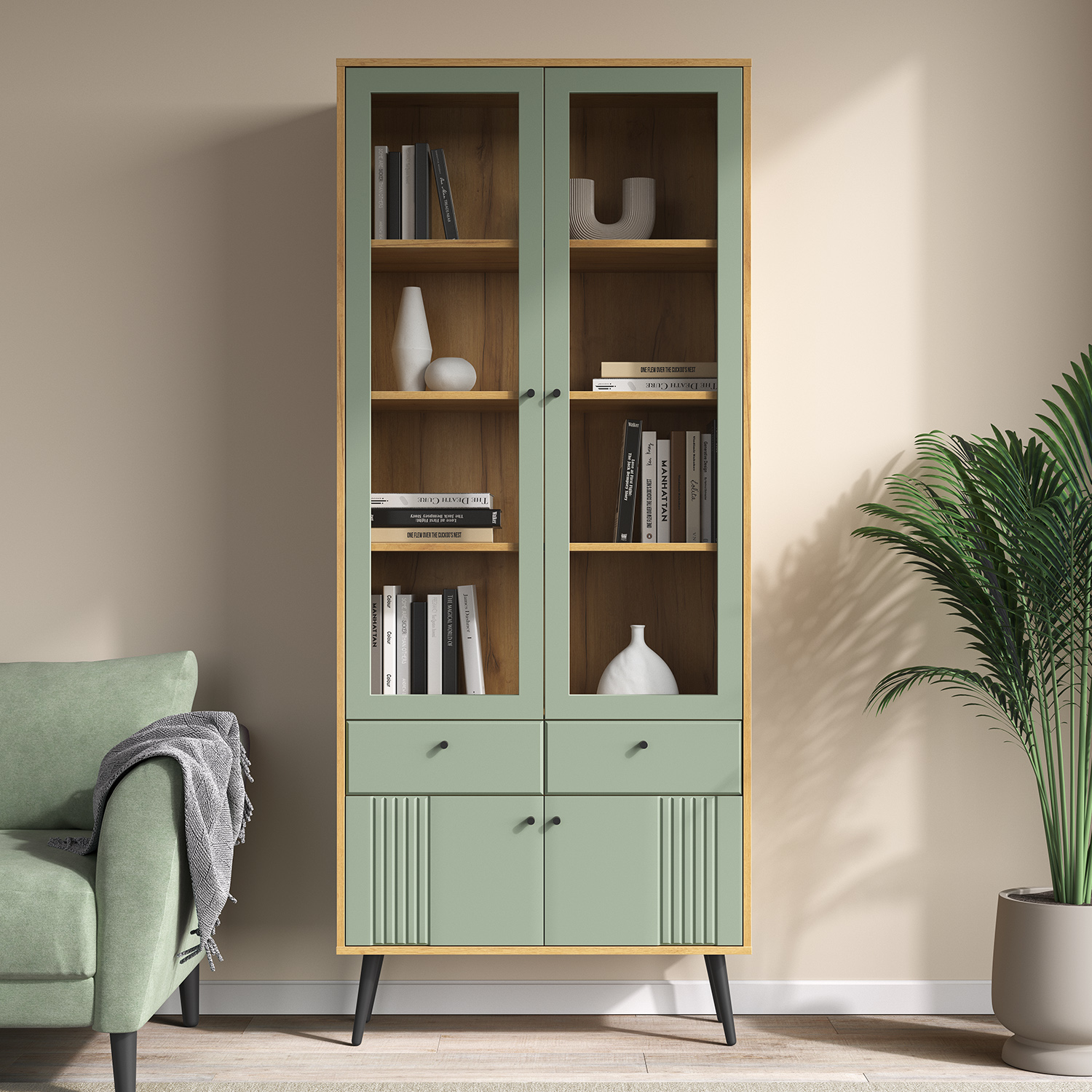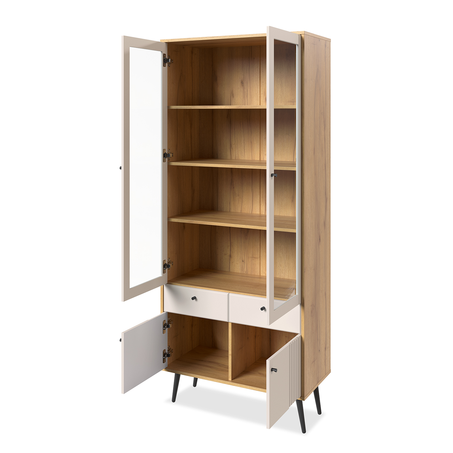Современный шкаф‑витрина Шкаф-витрина 2-х дверная Вега Саксония сочетает функциональность, эргономику и актуальный дизайн, становясь практичным элементом любого интерьера.