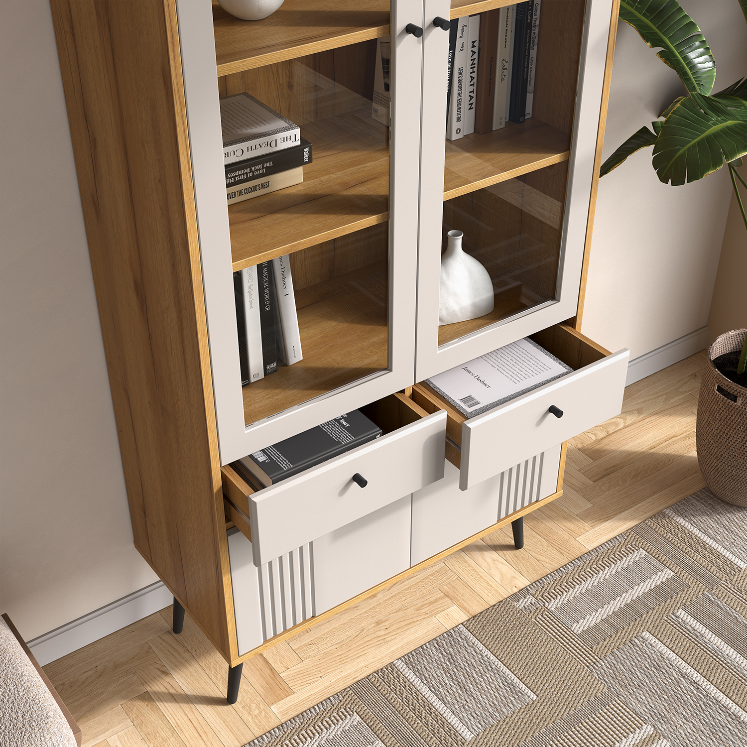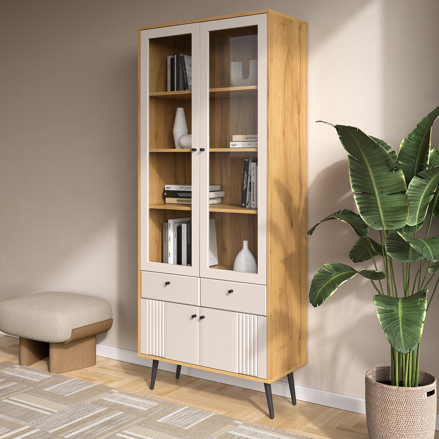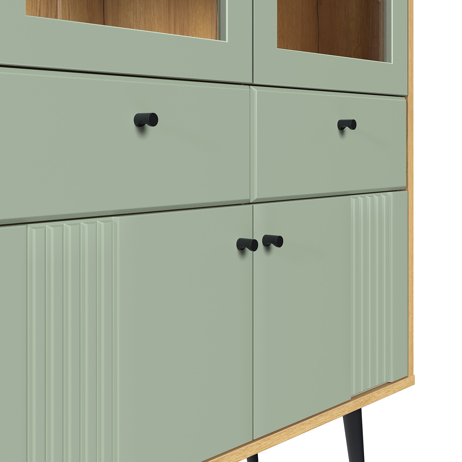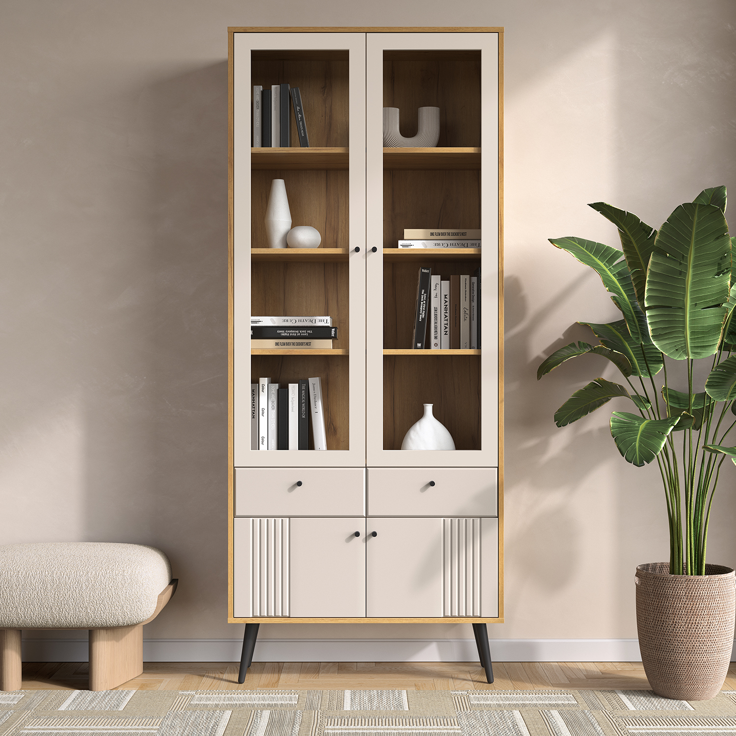 Современный шкаф‑витрина Шкаф-витрина 2-х дверная Вега Саксония сочетает функциональность, эргономику и актуальный дизайн, становясь практичным элементом любого интерьера.