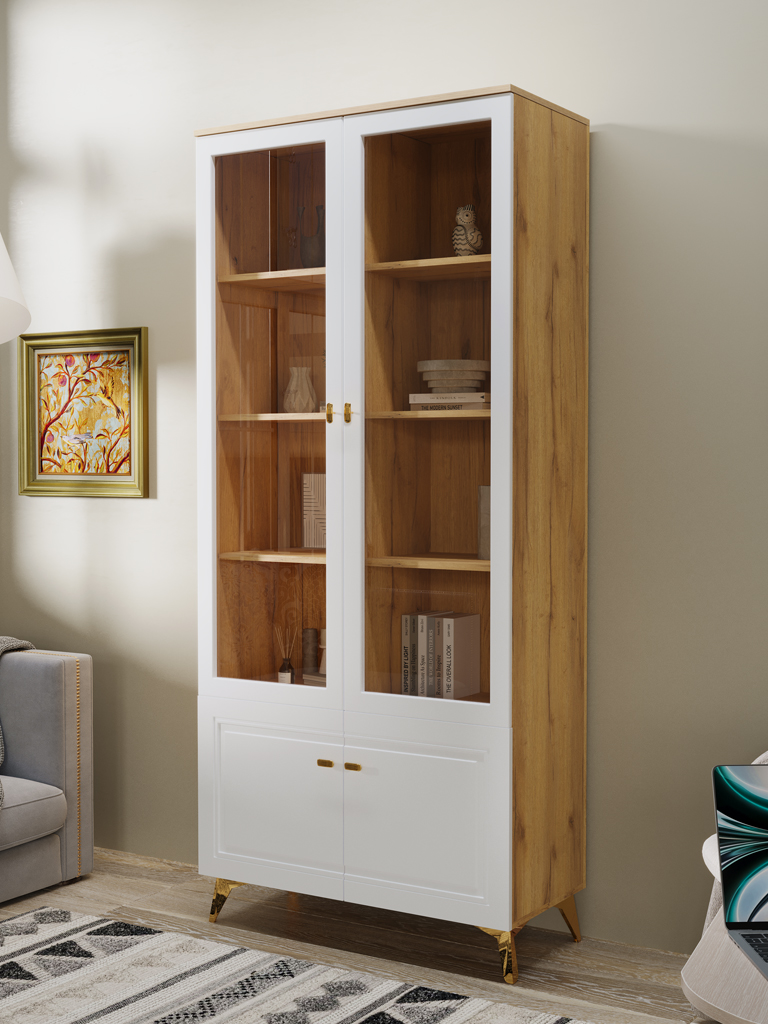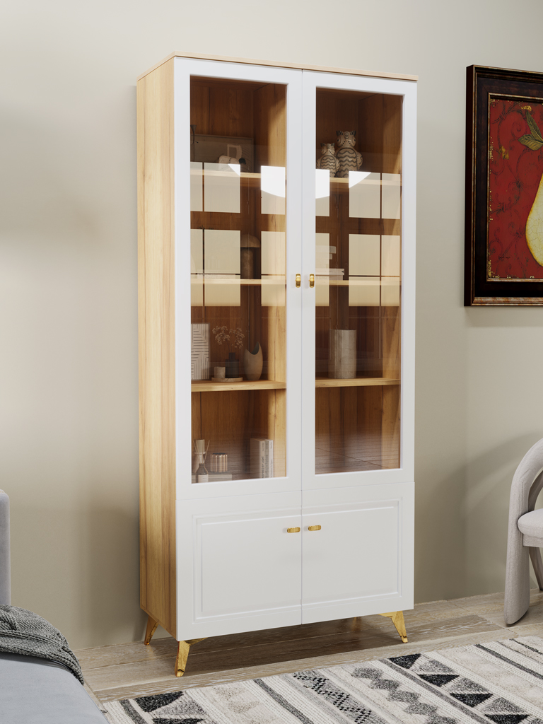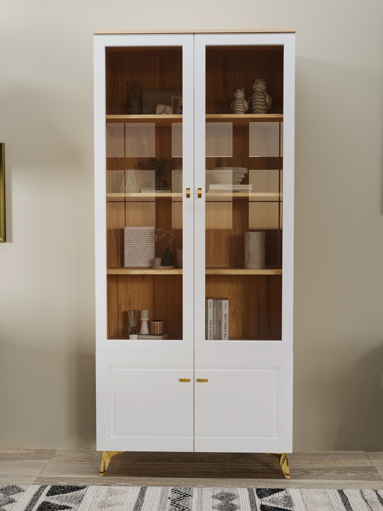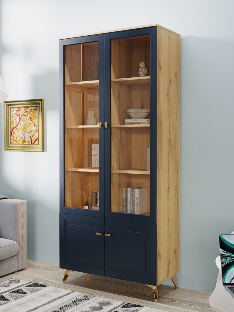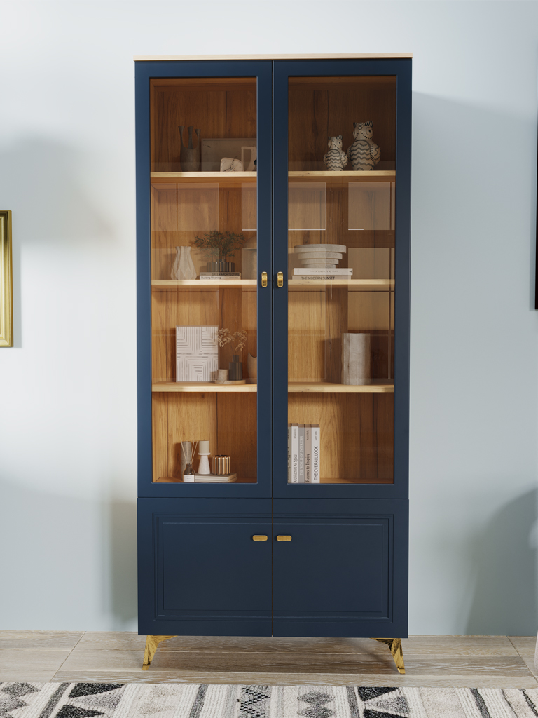 Современный Шкаф-витрина 2-х дверный Вега Сапфир сочетает функциональность, эргономику и актуальный дизайн, становясь практичным элементом любого интерьера.