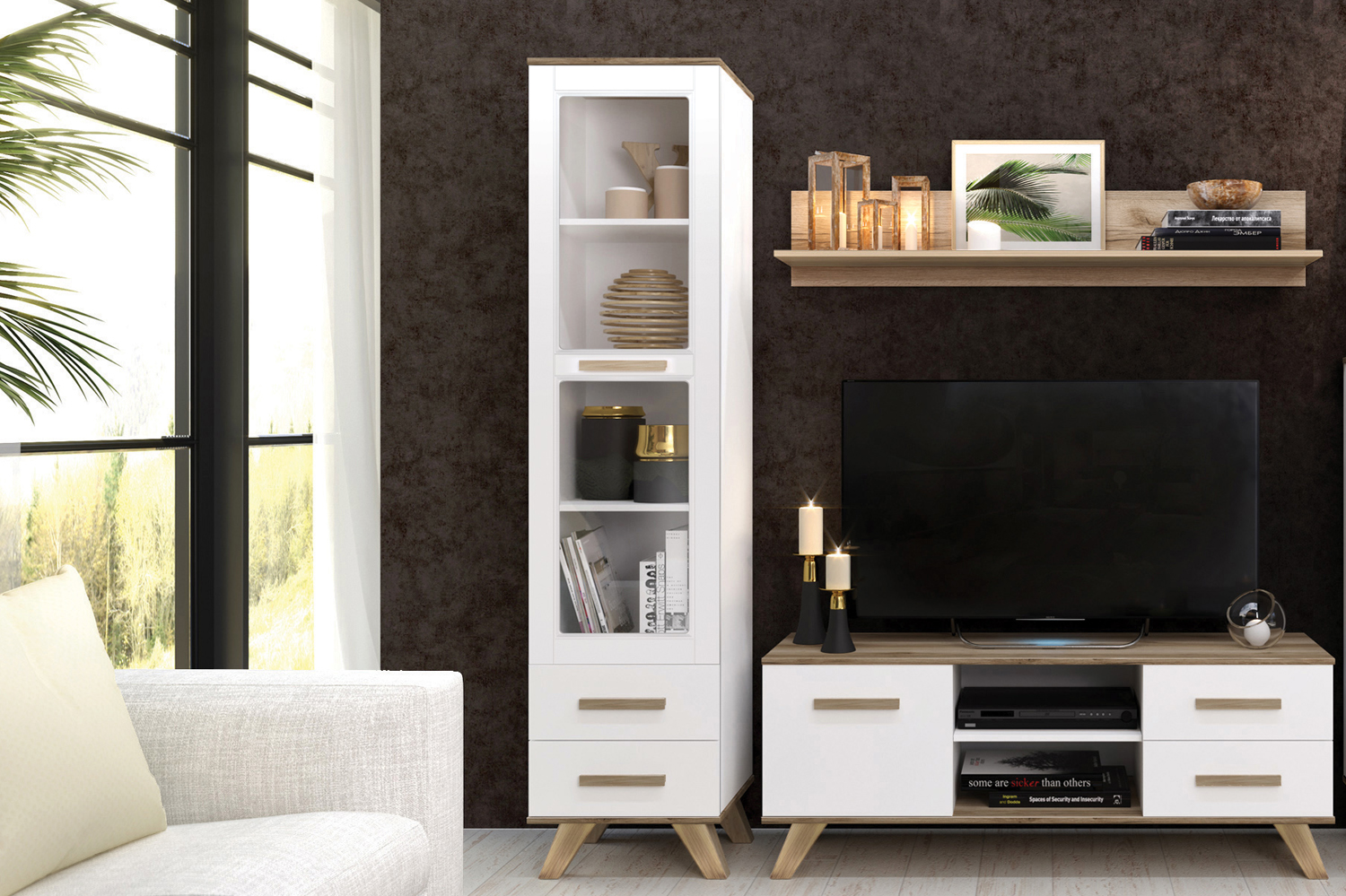 Современный шкаф‑витрина Вега Скандинавия сочетает функциональность, эргономику и актуальный дизайн, становясь практичным элементом любого интерьера.