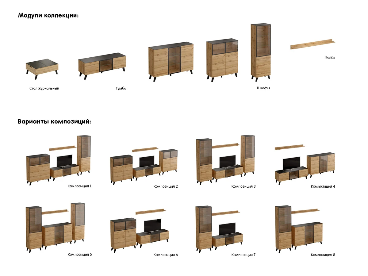 Четкие силуэты, строгие линии, компактные размеры, деревянные ножки, создающие облеченный визуальный образ, — мебель гармонично интегрируется даже в небольшое пространство. Стеклянные фасады обеспечивают игру светотени, рассеивают и преломляют лучи света, что создаёт особенную атмосферу. Внутреннее пространство модулей оснащено светодиодной подсветкой. Комбинированные конструкции с открытыми и сплошными секциями позволяют разместить на виду то, что радует глаз, и спрятать необходимое. Forest — лаконичная и практичная мебель вне времени.