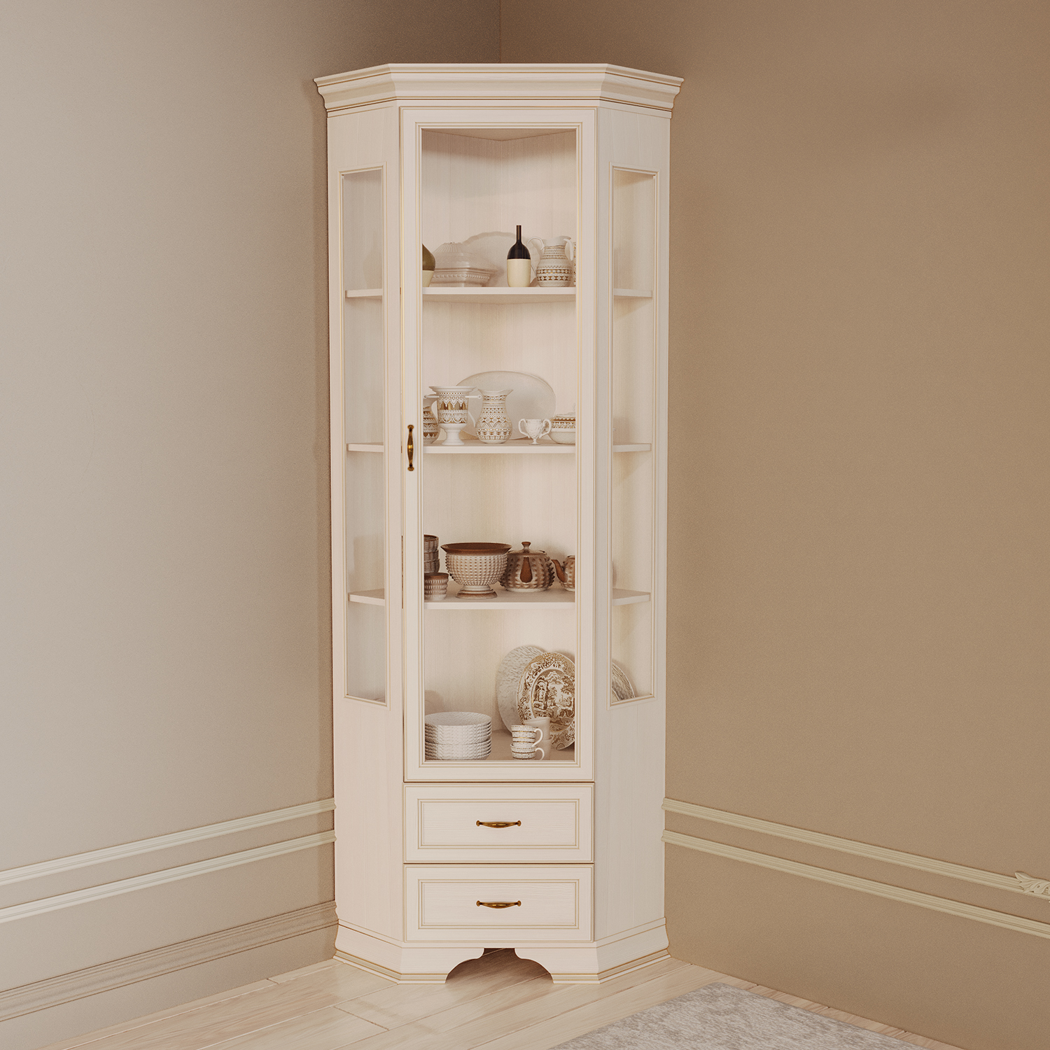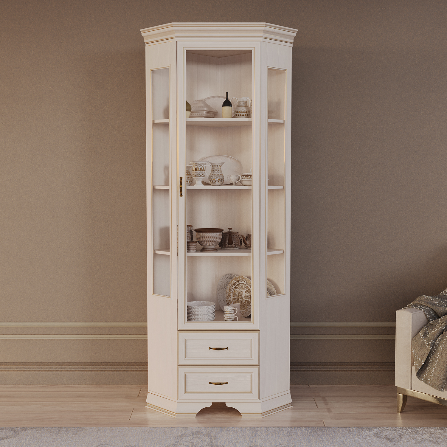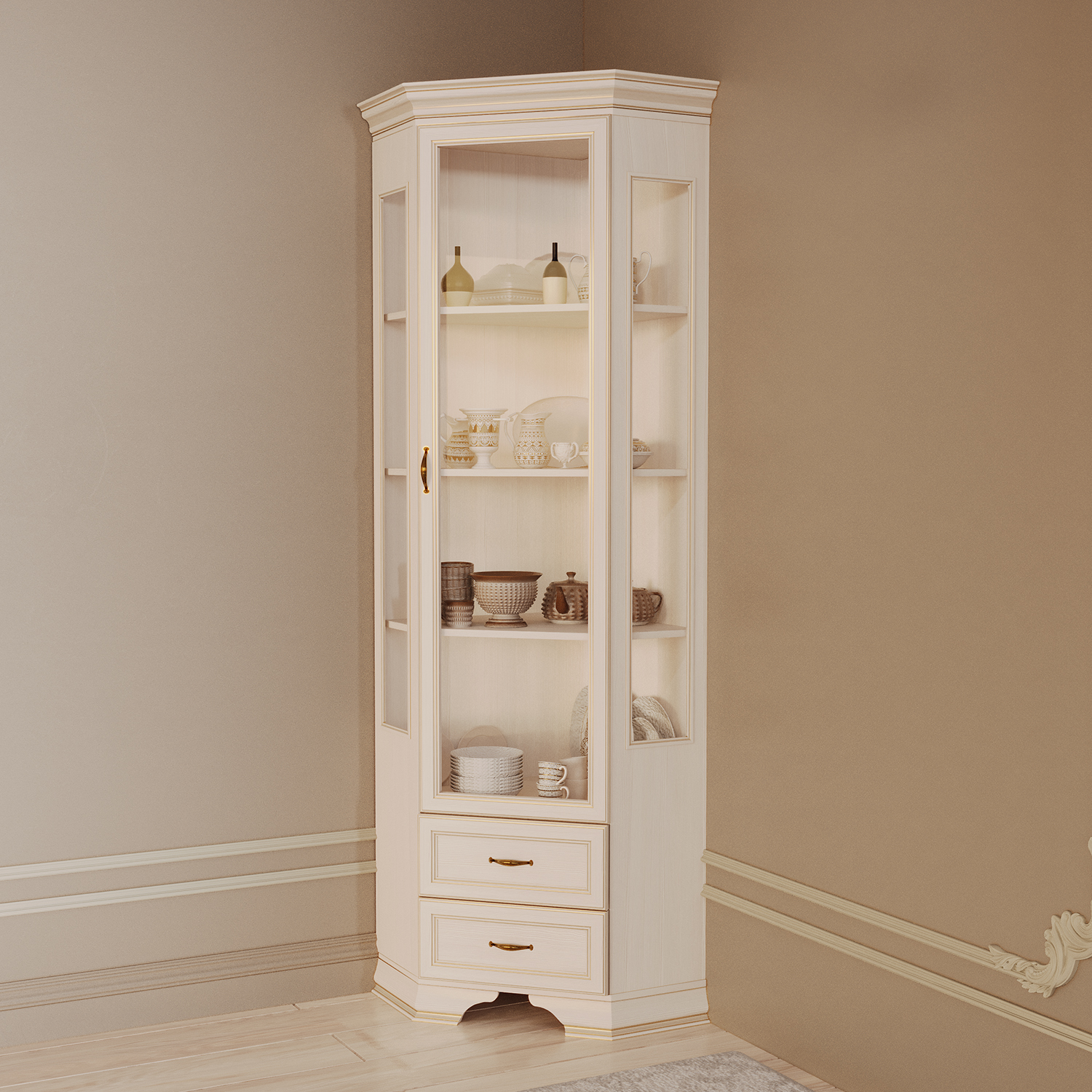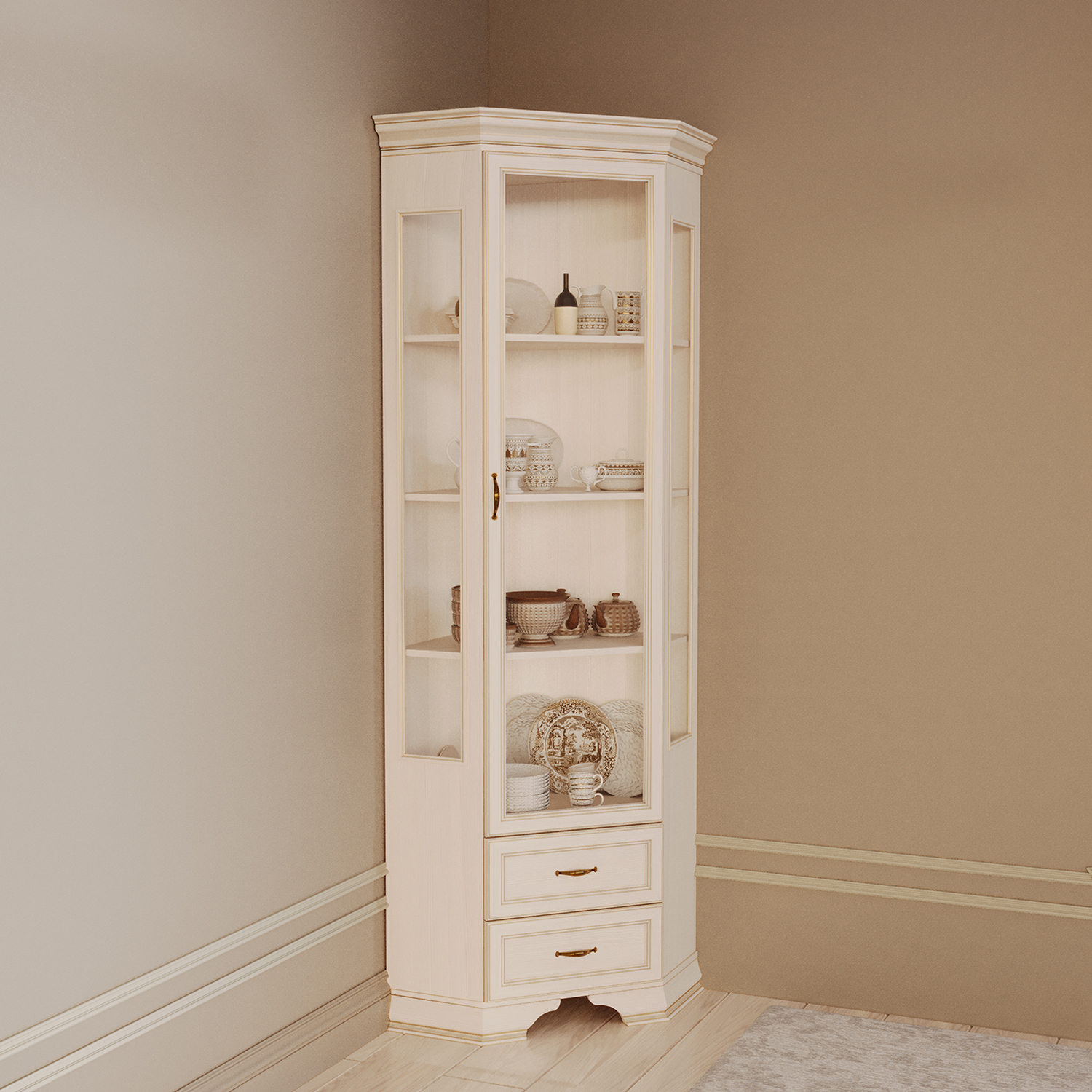 Современный шкаф‑витрина Сиена сочетает функциональность, эргономику и актуальный дизайн, становясь практичным элементом любого интерьера.