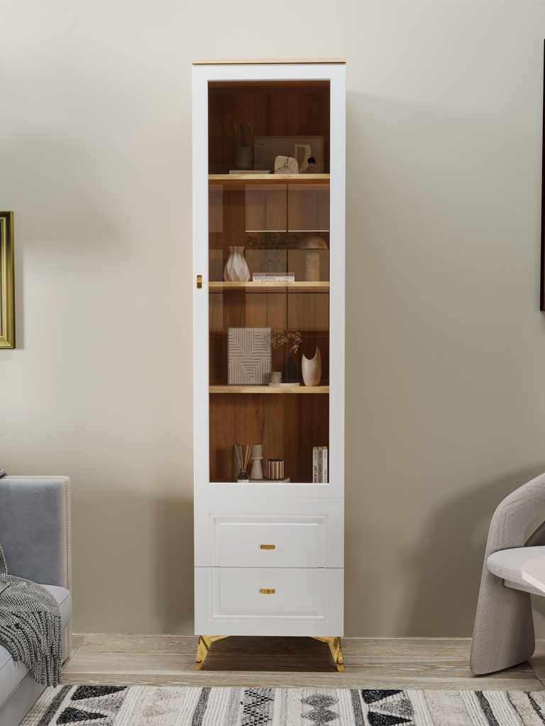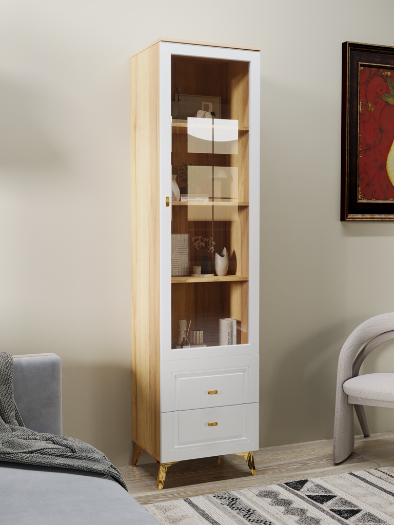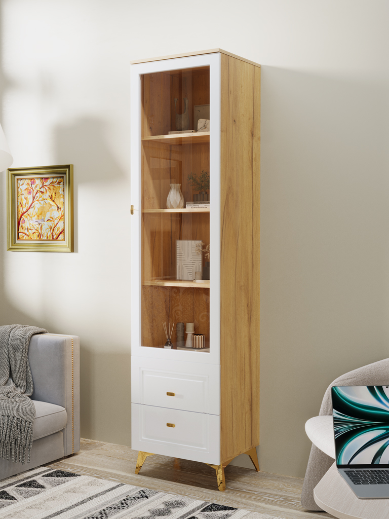 Современный шкаф‑витрина Вега Сапфир сочетает функциональность, эргономику и актуальный дизайн, становясь практичным элементом любого интерьера.