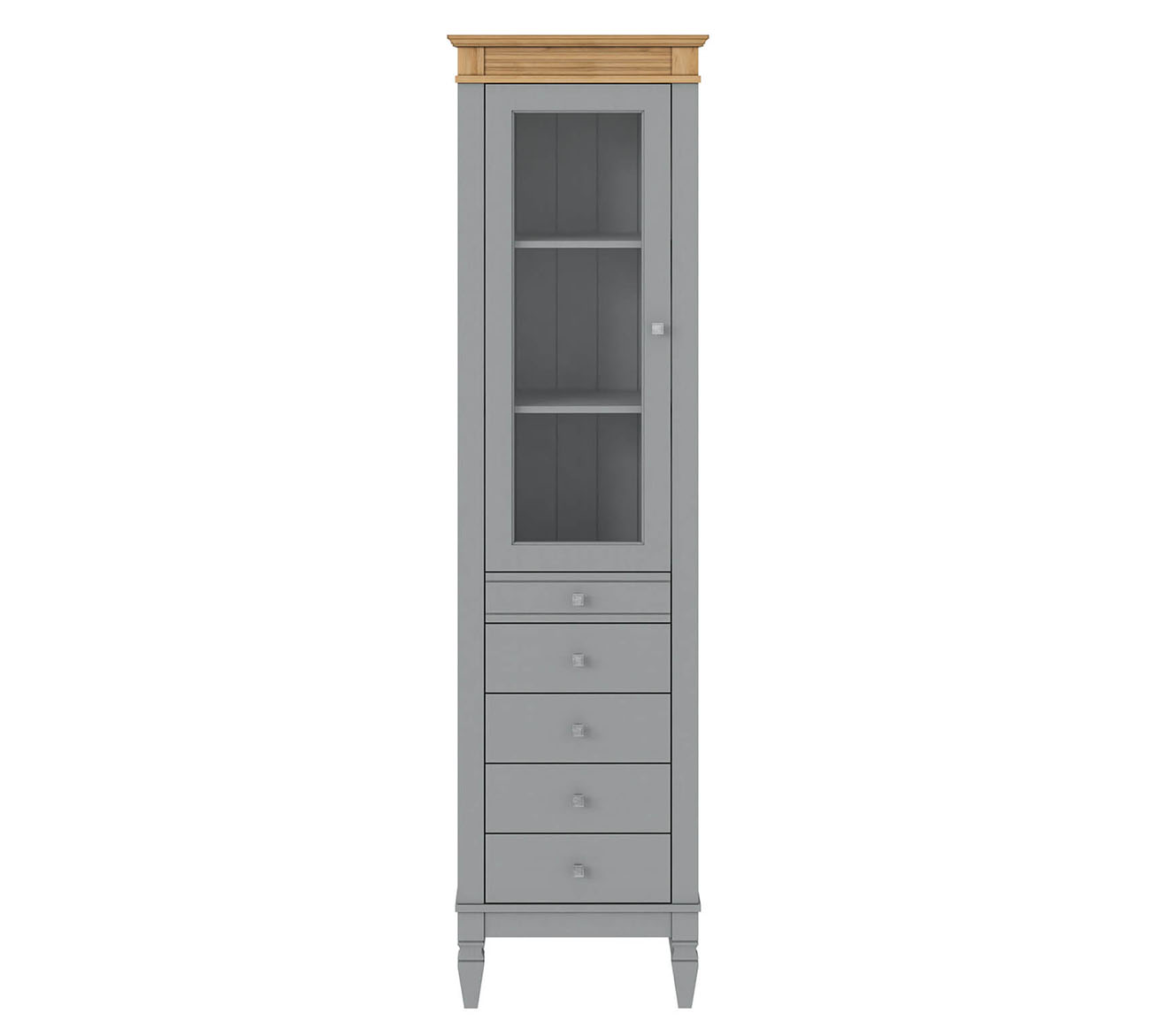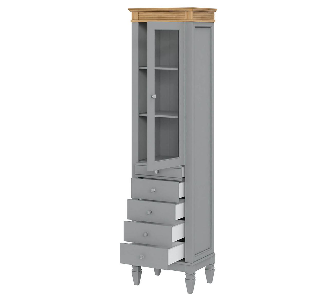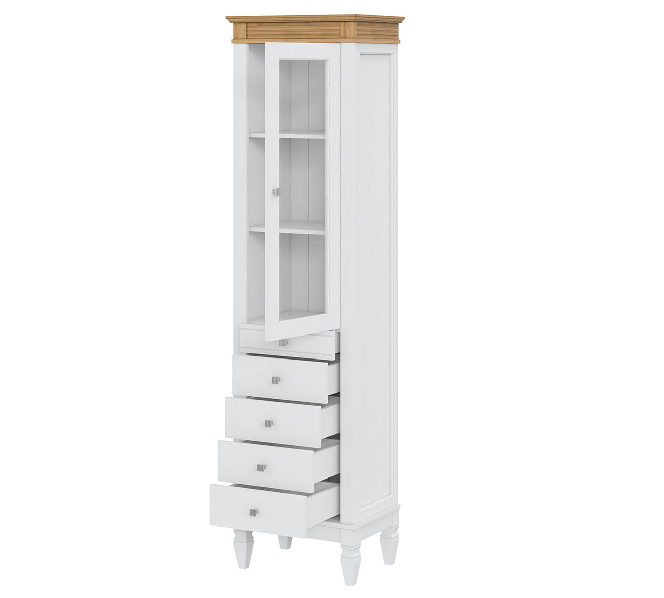 Фурнитура: Направляющие скрытого монтажа со встроенным демпфером (доводчиком для плавного закрывания). Ручки - стиль классика, имеют форму квадрата, материал металл, цвет серебро состаренное.