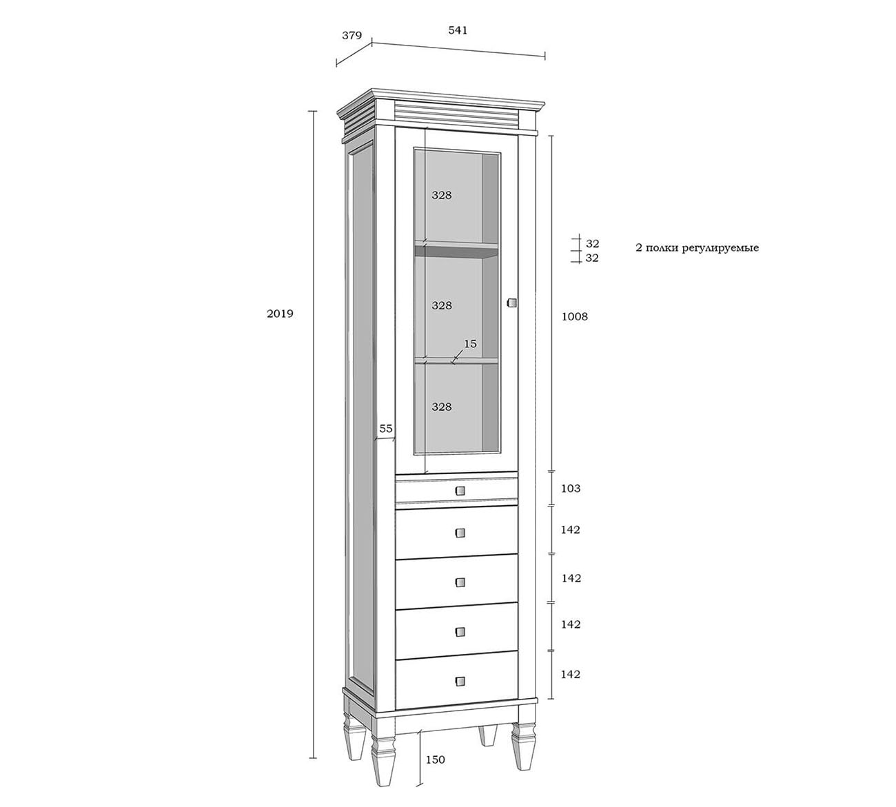 Внутреннее наполнение: Стеллаж может быть правым или левым, определяется при сборке.