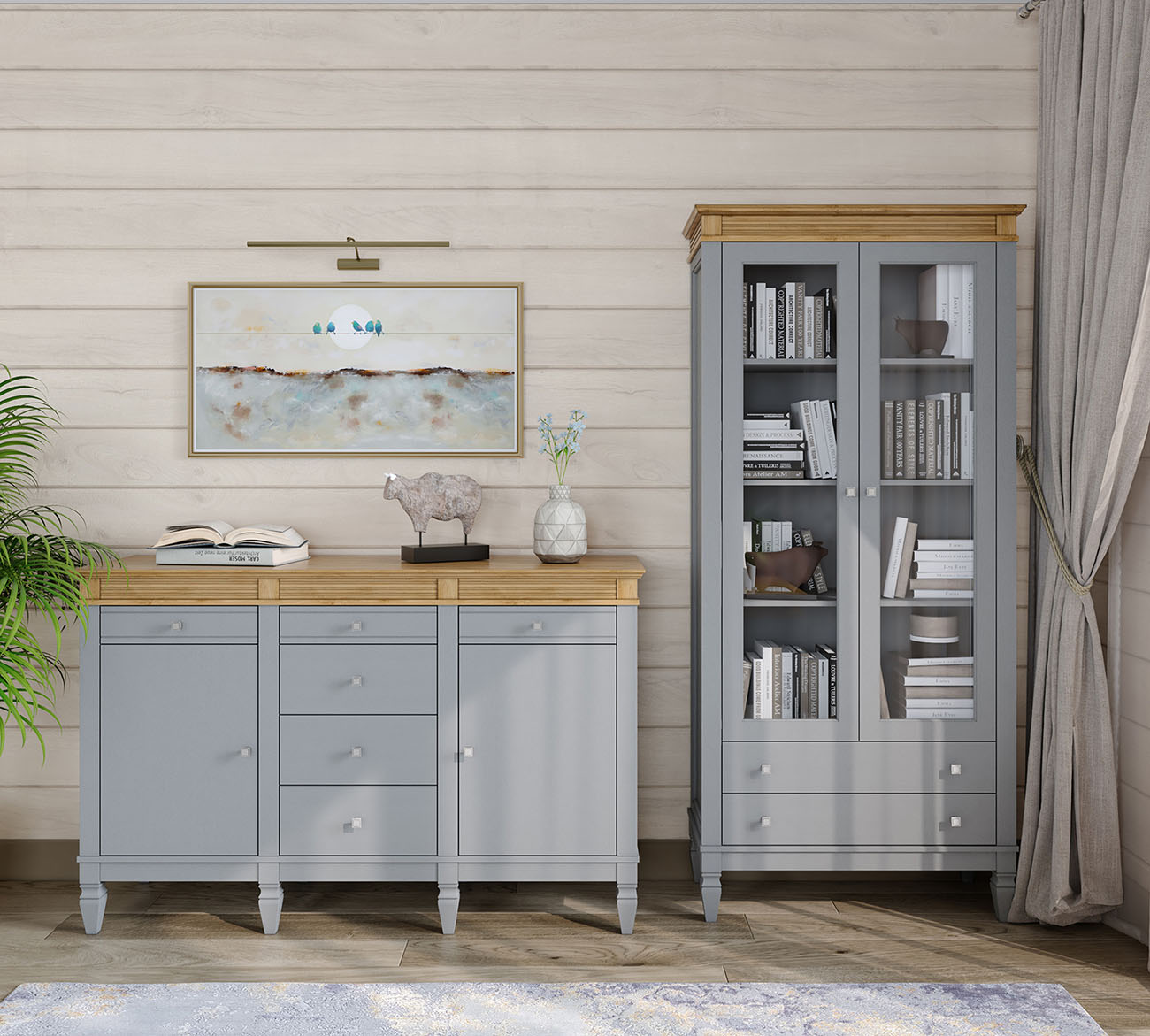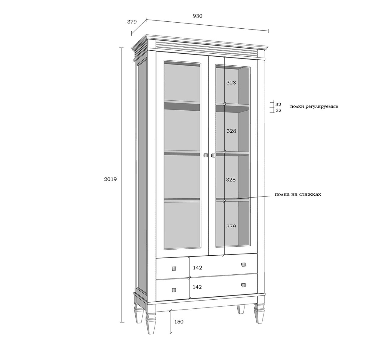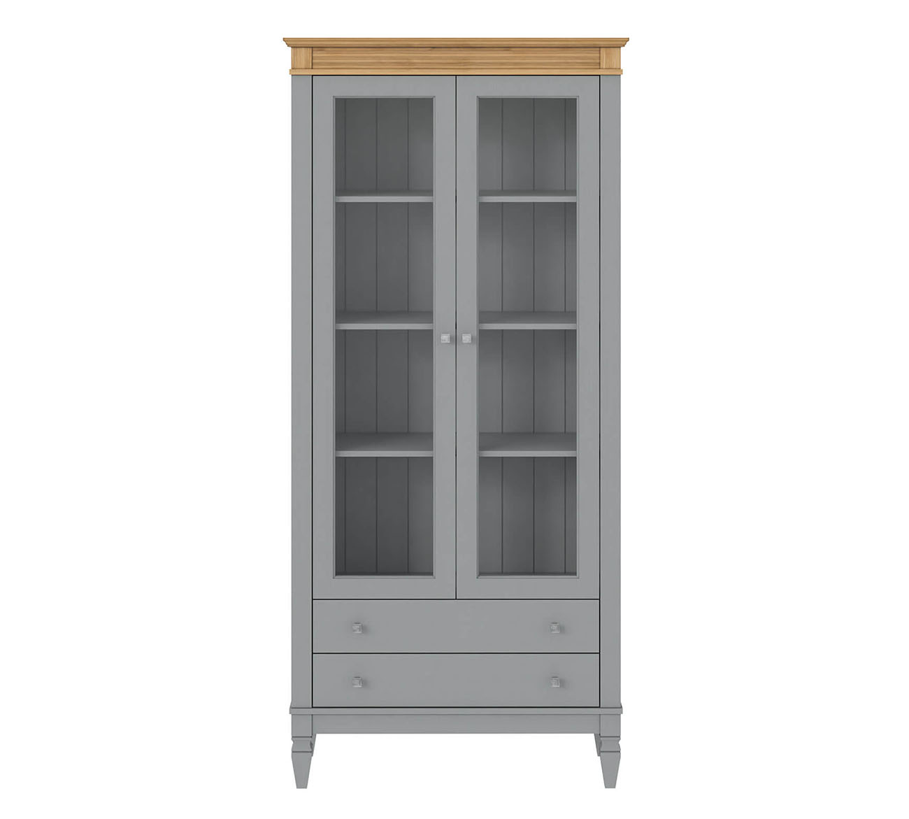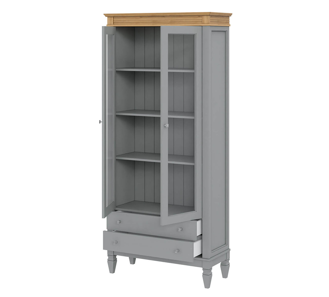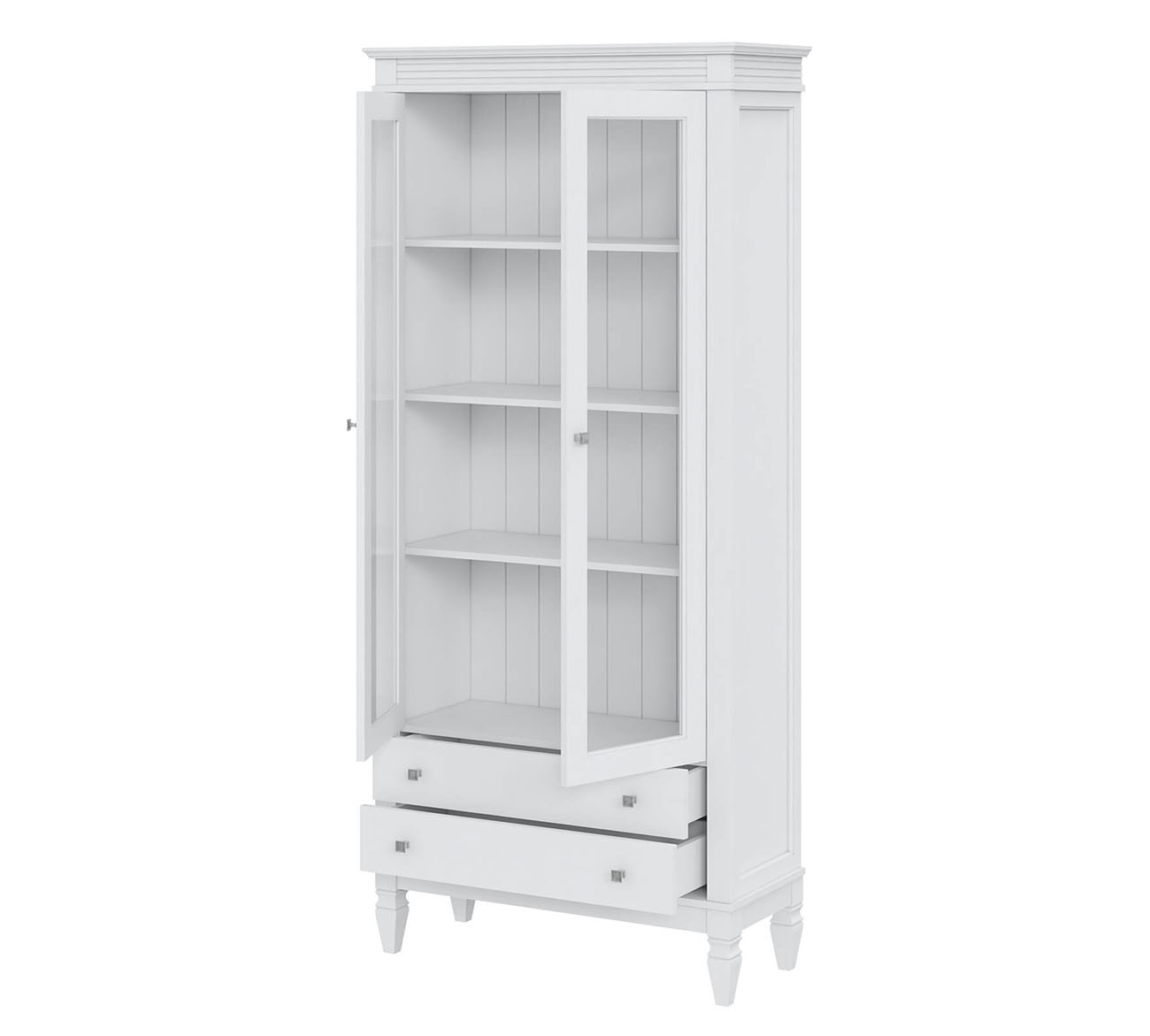 Фурнитура: Направляющие скрытого монтажа со встроенным демпфером (доводчиком плавного закрывания). Ручки - стиль классика, имеют форму квадрата, материал металл, цвет серебро состаренное.