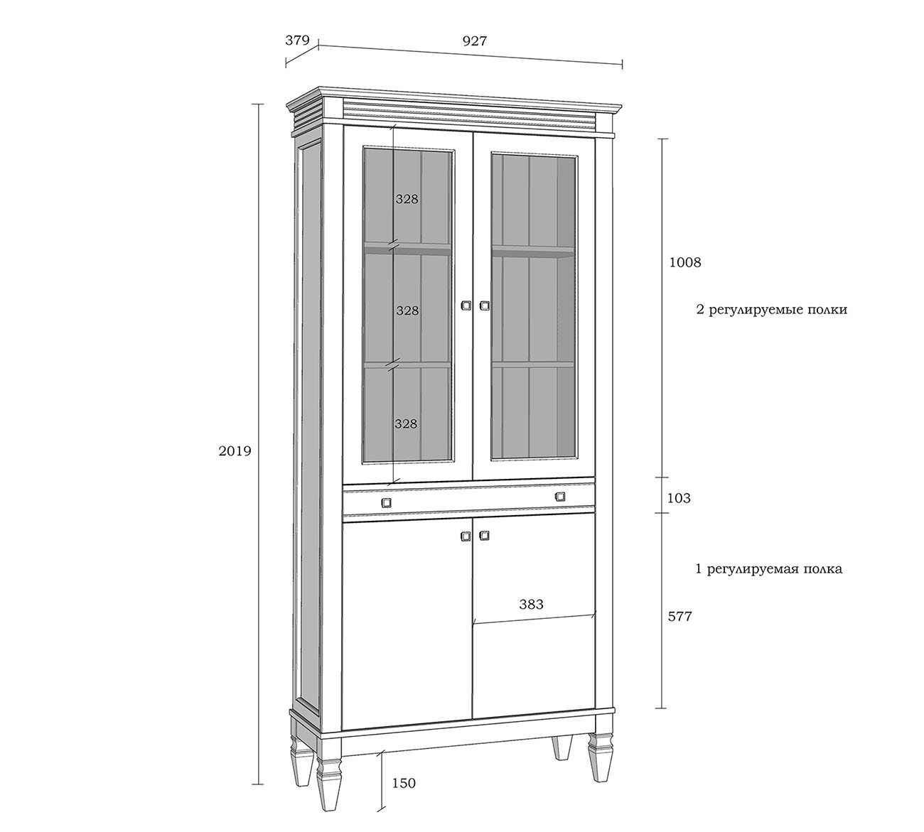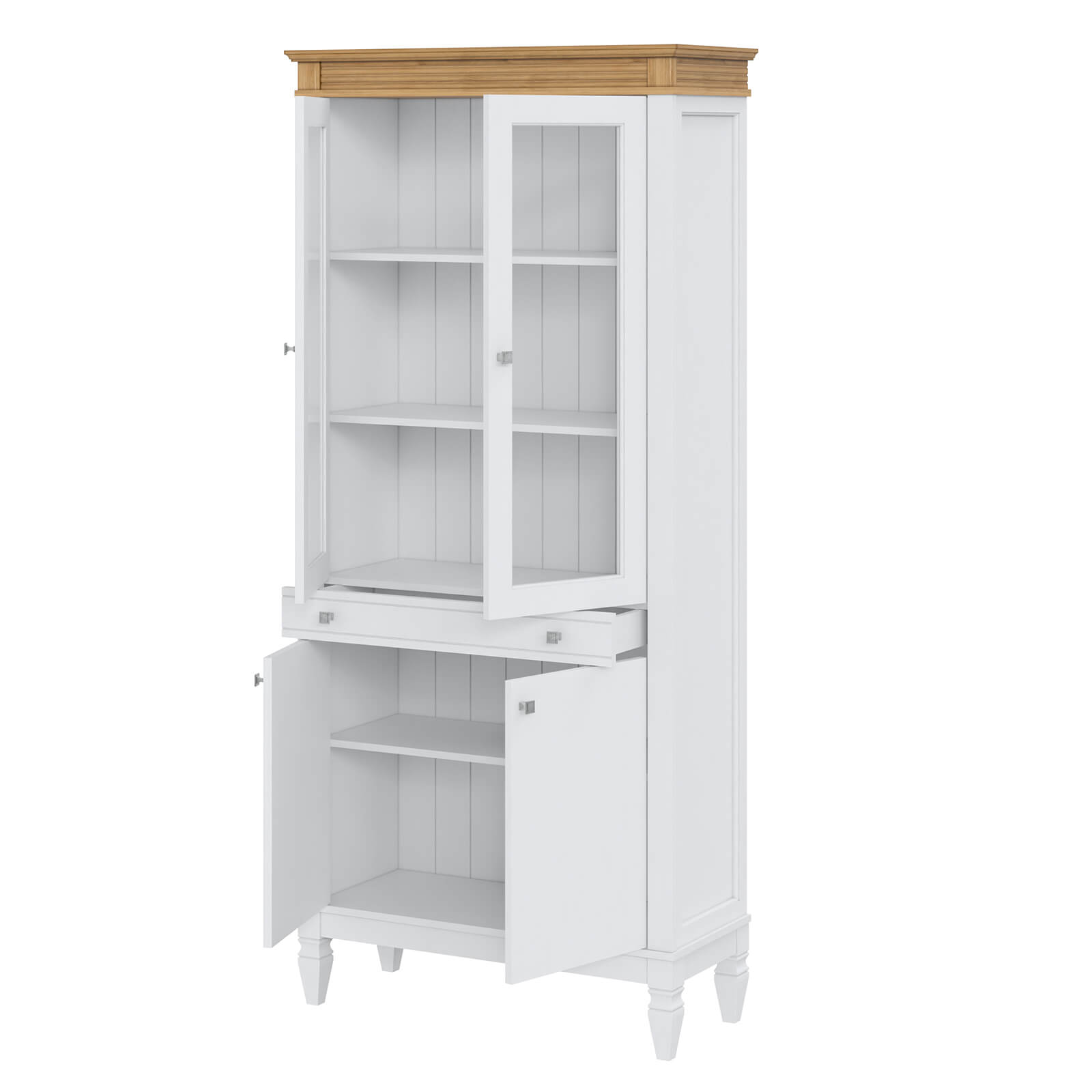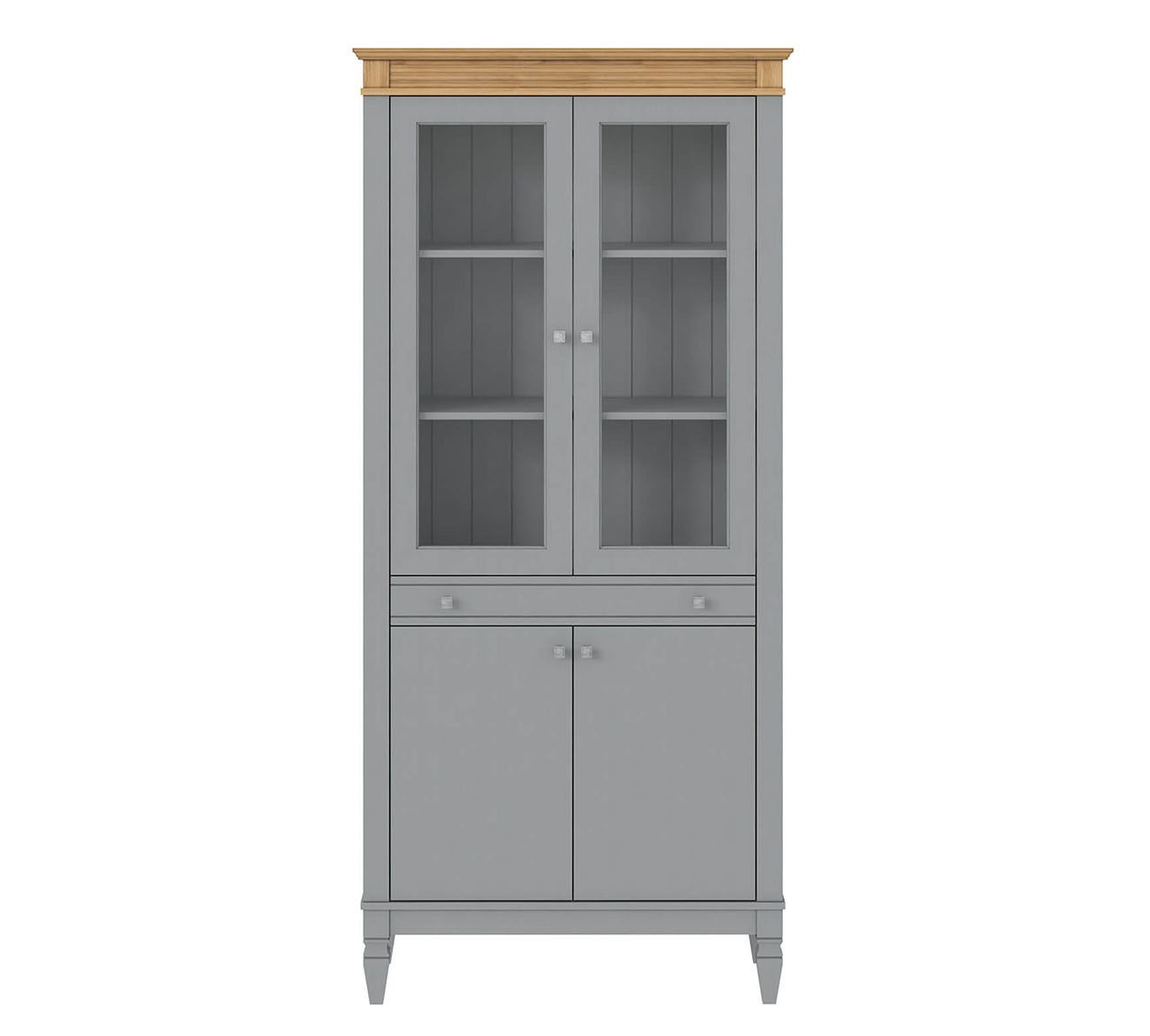 Фурнитура: Направляющие скрытого монтажа со встроенным демпфером (доводчиком плавного закрывания). Ручки - стиль классика, имеют форму квадрата, материал металл, цвет серебро состаренное.