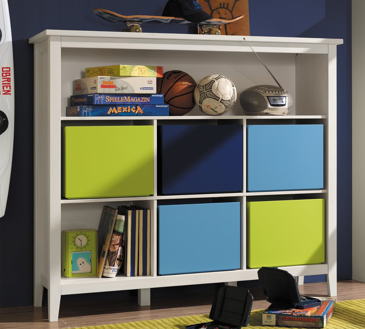 На верхней полке можно разместить любимые книги, другие шесть отделений универсальные: используйте их по назначению или декорируйте оригинальными предметами интерьера.