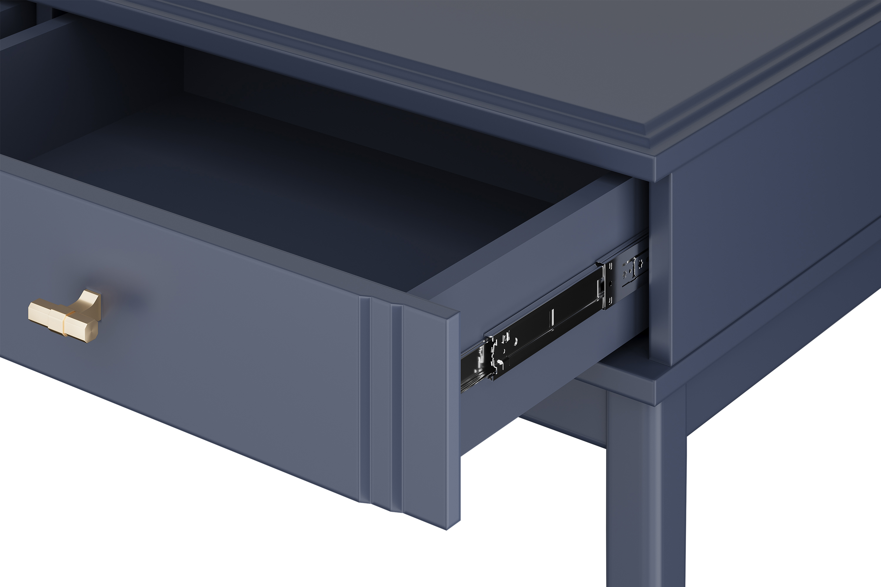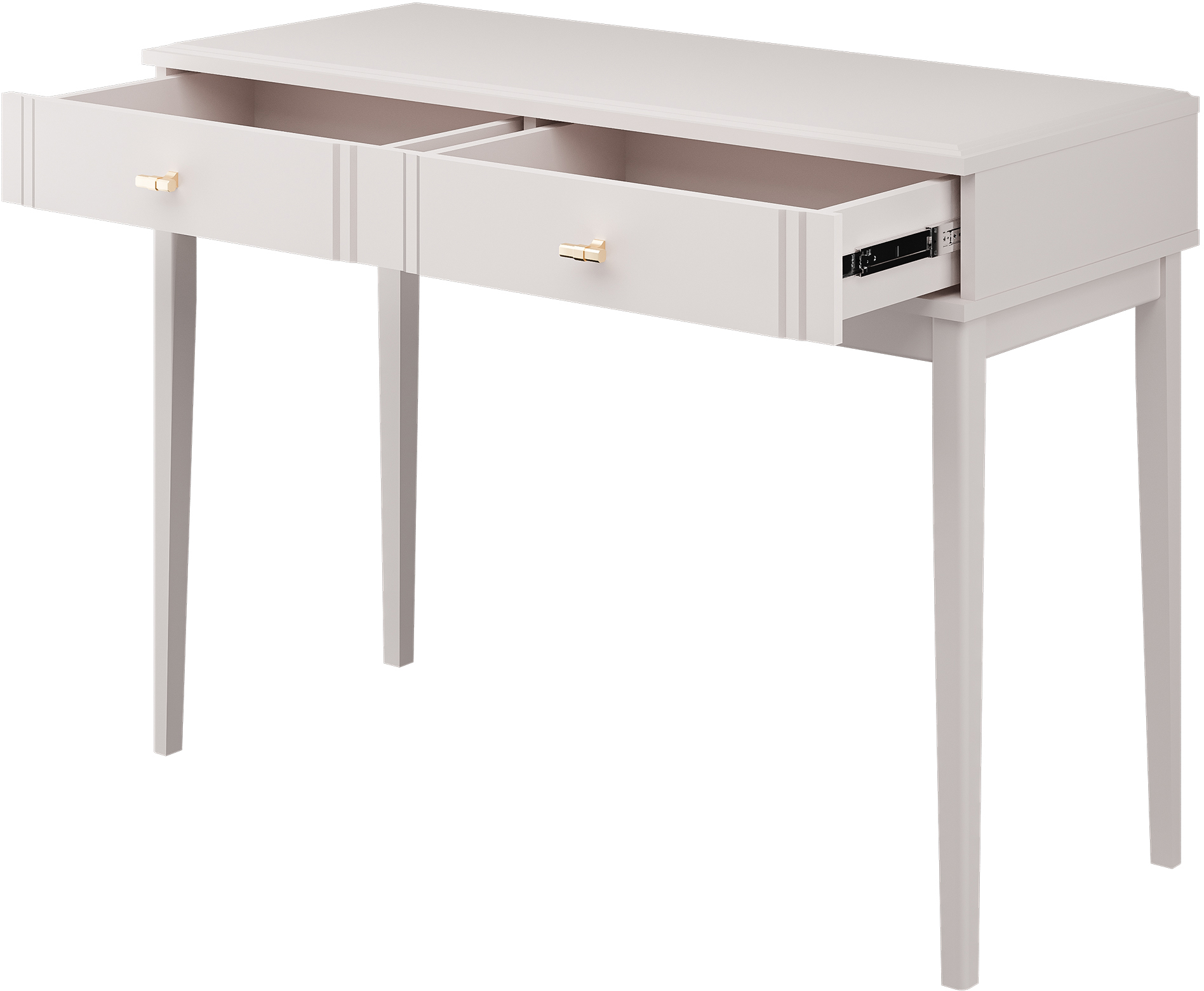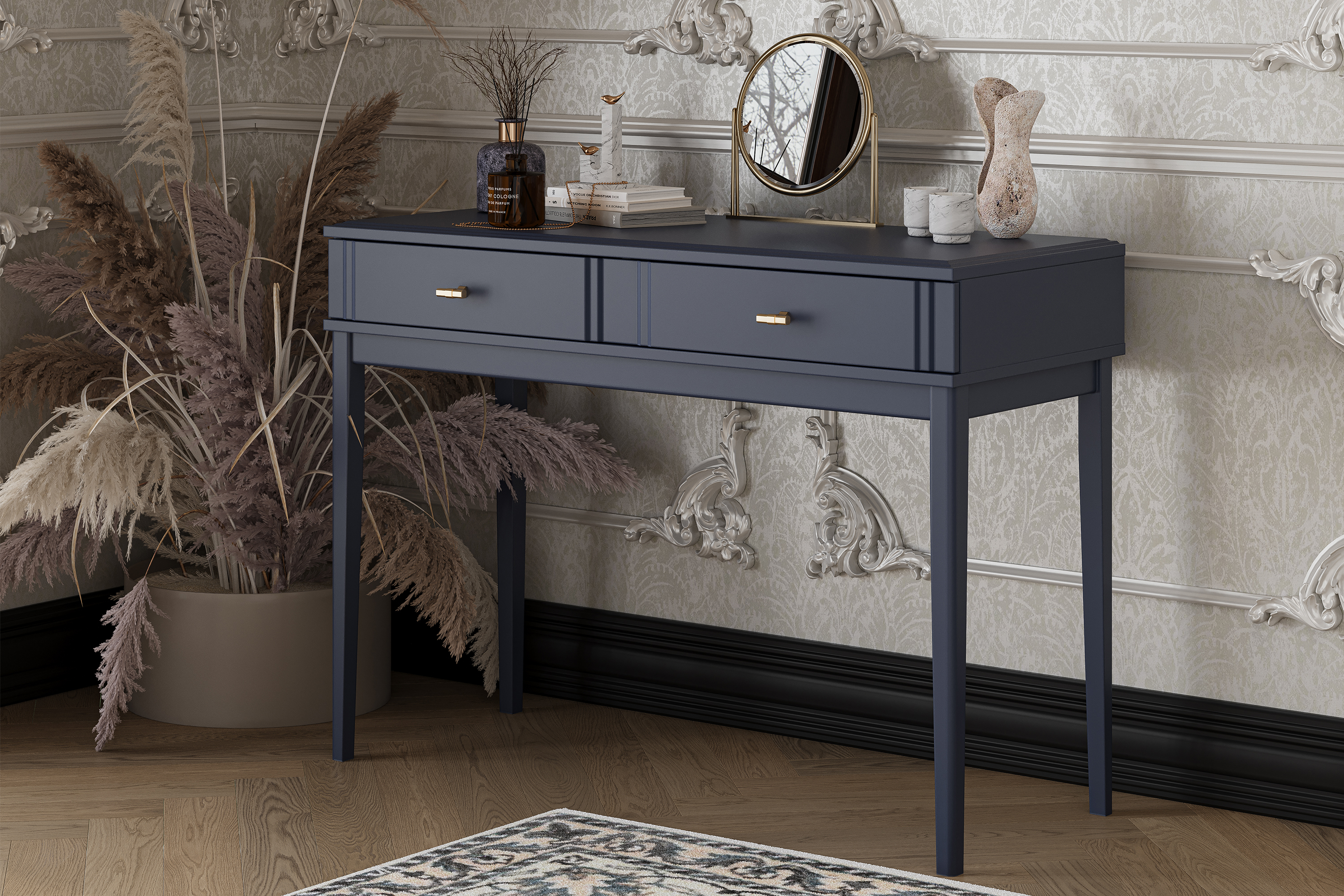 Туалетный столик Джали оснащён одним выдвижным ящиком с шариковыми направляющими полного выдвижения, что обеспечивает плавное и надёжное открывание. Опоры выполнены из массива, что придаёт конструкции устойчивость и долговечность.
