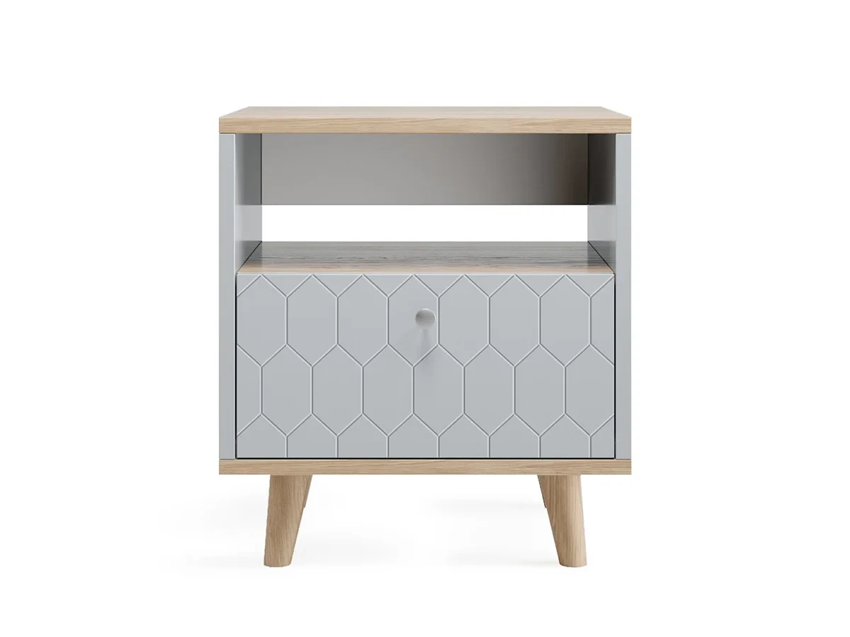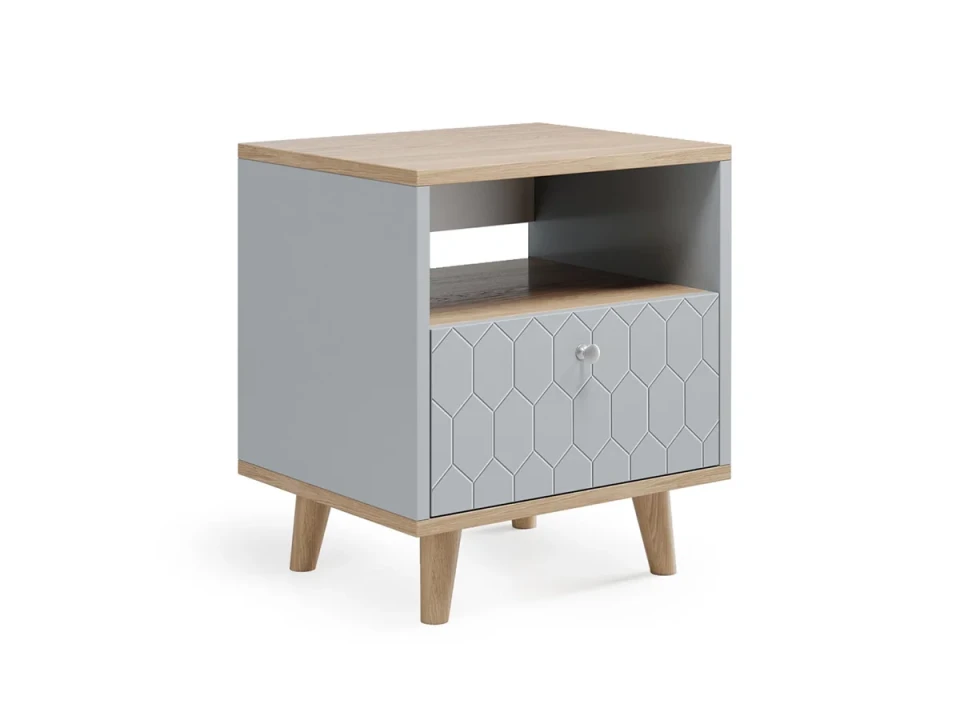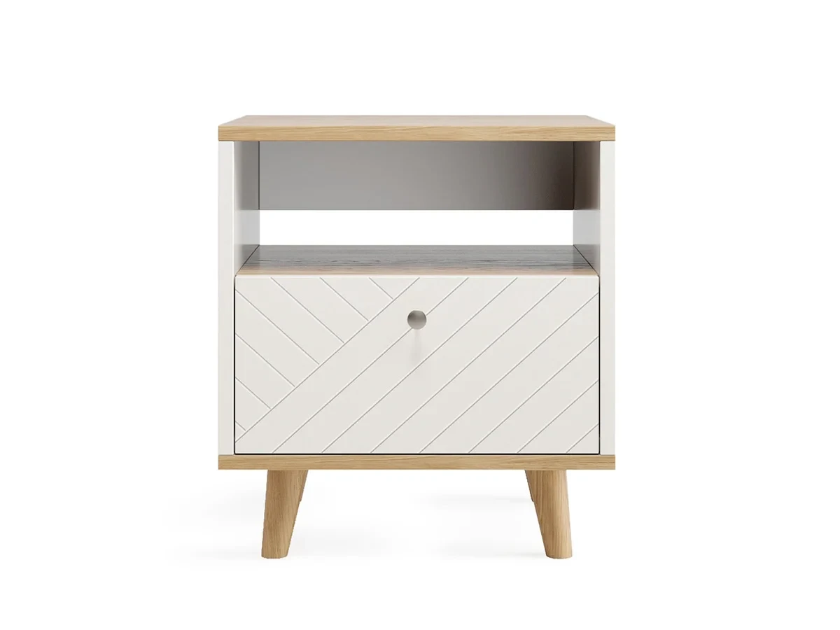 Главная изюминка коллекции TWIN — это изящная гравировка на фасадах. Столешница и основание тумбы покрыты натуральным шпоном дуба, что придаёт им благородный вид. Ножки изготовлены из массива дуба, обеспечивая прочность и долговечность конструкции.