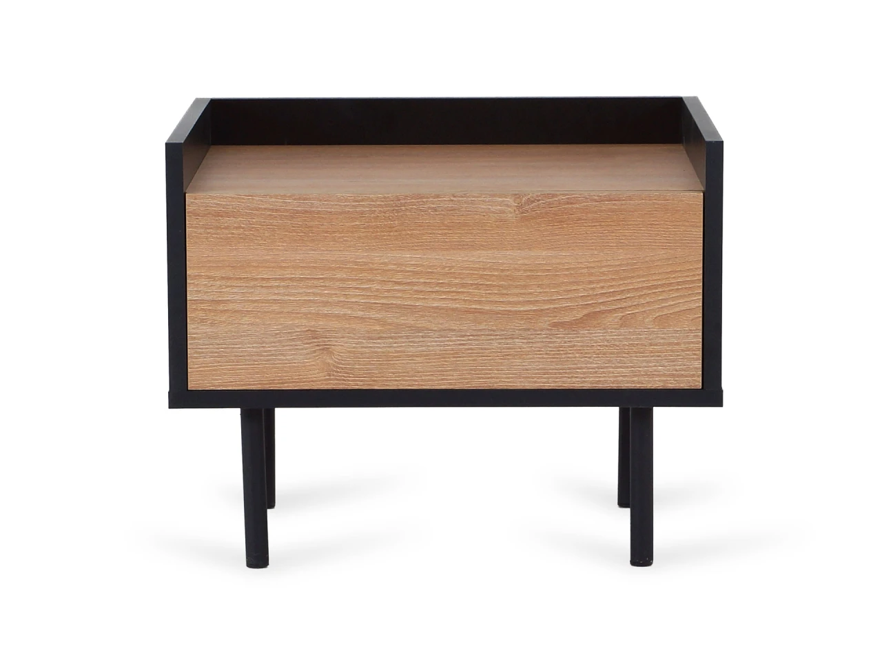 Тумба включает в себя рабочую поверхность и расположенным ниже по центру отделением с выдвижным ящиком.