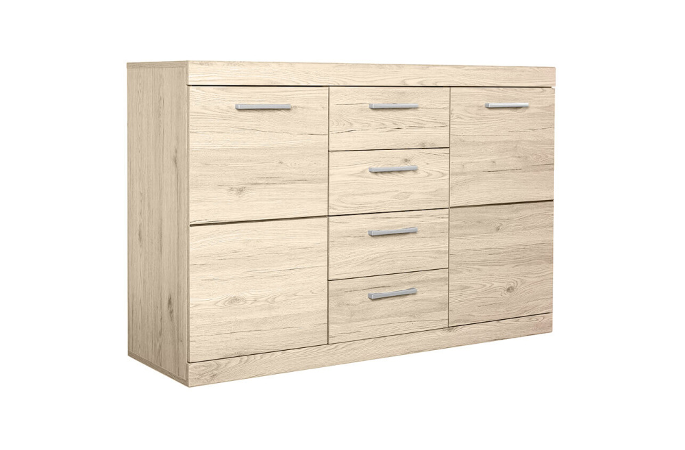 Многофункциональная тумба белорусского производства Oskar 2D4S имеет минималистичный дизайн и подходит интерьерам современного стиля. Ее фасады в цвете дуб санремо наполнят пространство светом и подойдут для обустройства детских, гостиных и молодежных комнат. На дверцах и ящиках установлены серебристые пластиковые ручки, которые не утяжеляют дизайн, а делают его еще более гармоничным.