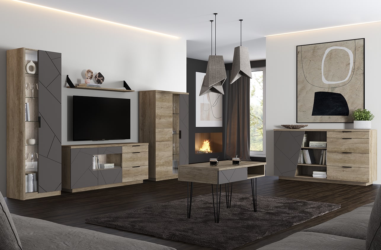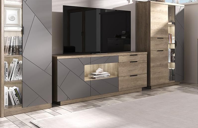 в гостиную — как тумба в современном стиле с выразительными линиями и сдержанной цветовой гаммой;