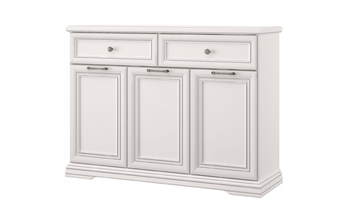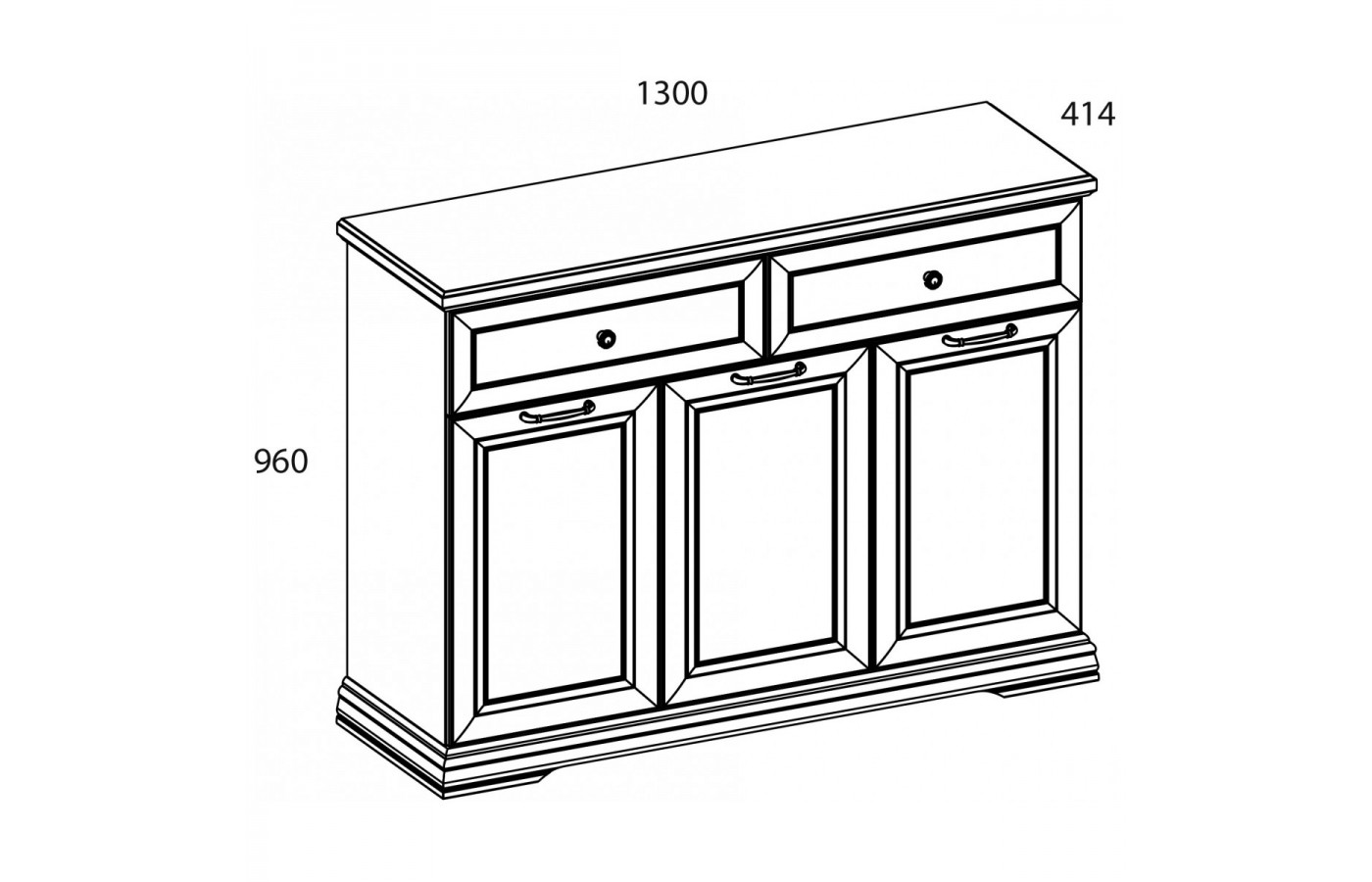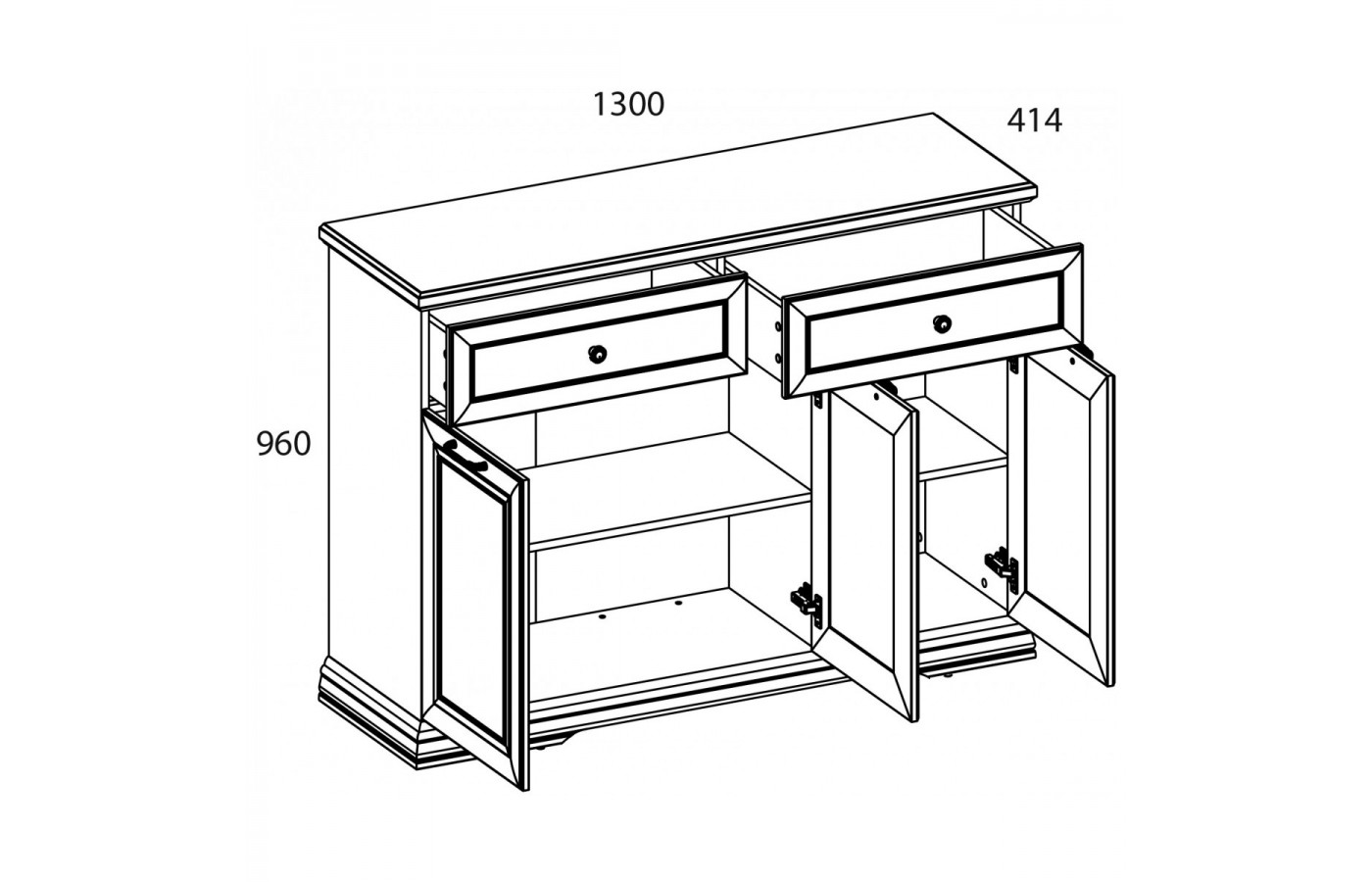 Конструкция тумбы 3D2S прямая, представляет собой одно отделение с полкой ЛДСП за двумя глухими дверями, одно отделение с полкой ЛДСП за одной глухой дверью, два выдвижных ящика (2S).
