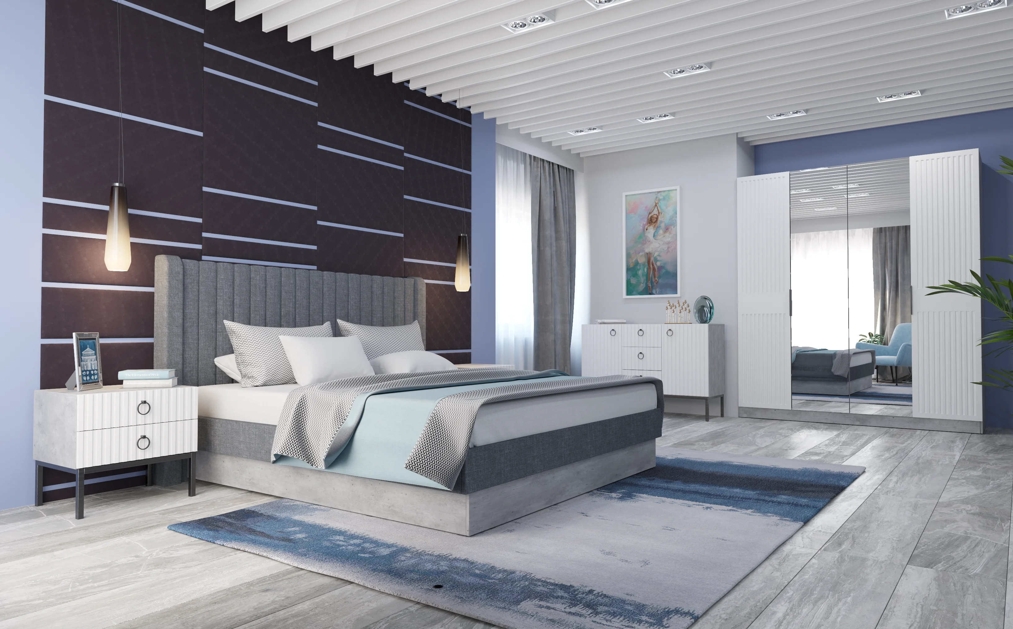- Гармоничное сочетание. Тумба идеально дополняет кровать «Бержер», помогая создать целостный интерьер спальни.