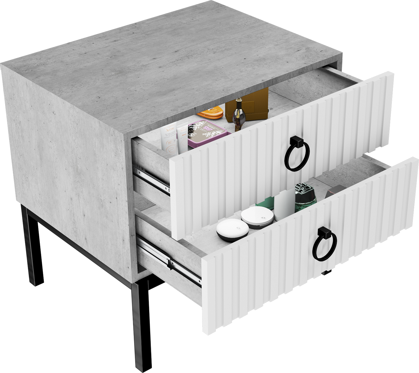 - Функциональность. Два вместительных ящика помогут аккуратно хранить книги, очки, телефон, косметику или другие мелочи — всё будет под рукой в вечернее и утреннее время.