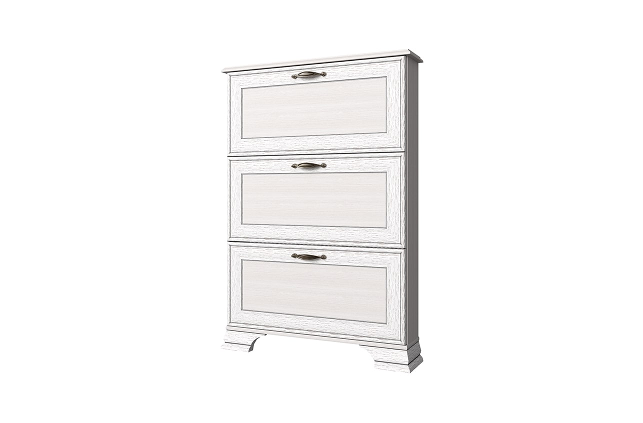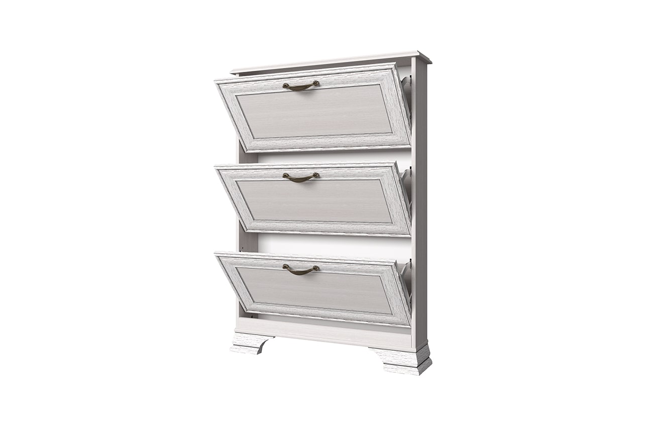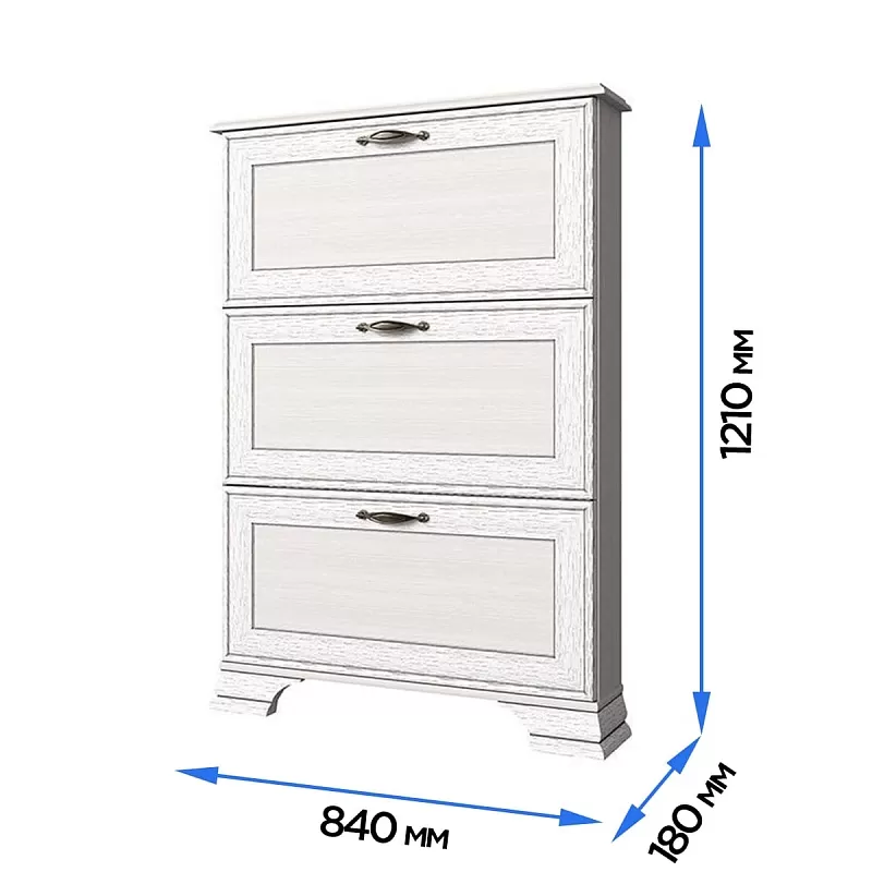 Обувная тумба 3D Tiffany оснащена тремя откидными дверями. Ее матовая поверхность не впитывает загрязнения, а при запылении легко очищается. Для большей устойчивости такую модель необходимо закрепить к стене. Обувница имеет прочную конструкцию, усиленную кромочным материалом ПВХ толщиной 0,5 мм. Используйте ее отдельно или в составе модульной мебели линейки «Тиффани».