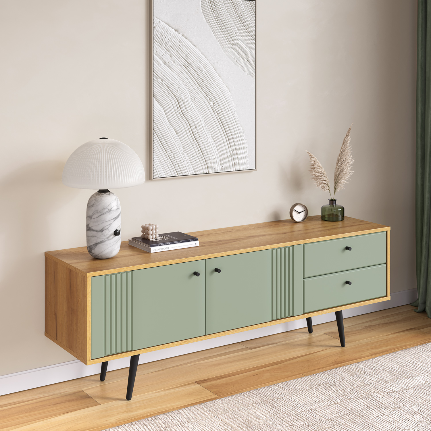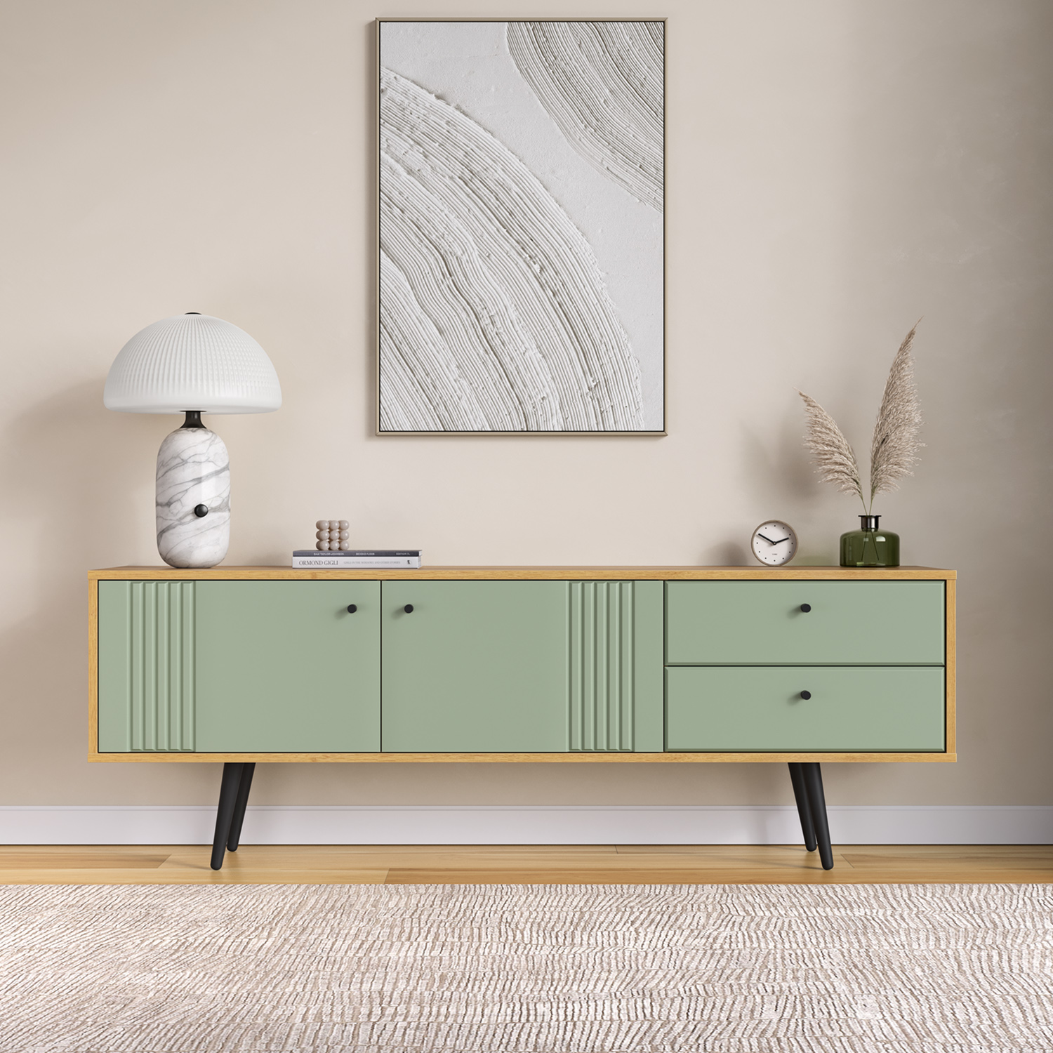 «Вега Саксония» не просто размещает телевизор — она становится стилистическим центром гостиной, объединяя комфорт, функциональность и современный дизайн в едином решении.