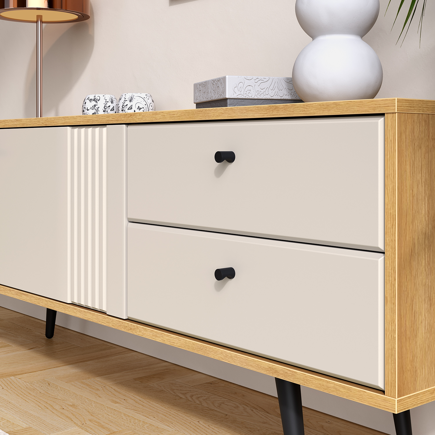 - чёрные металлические ручки — лаконичный акцент и удобство в использовании.