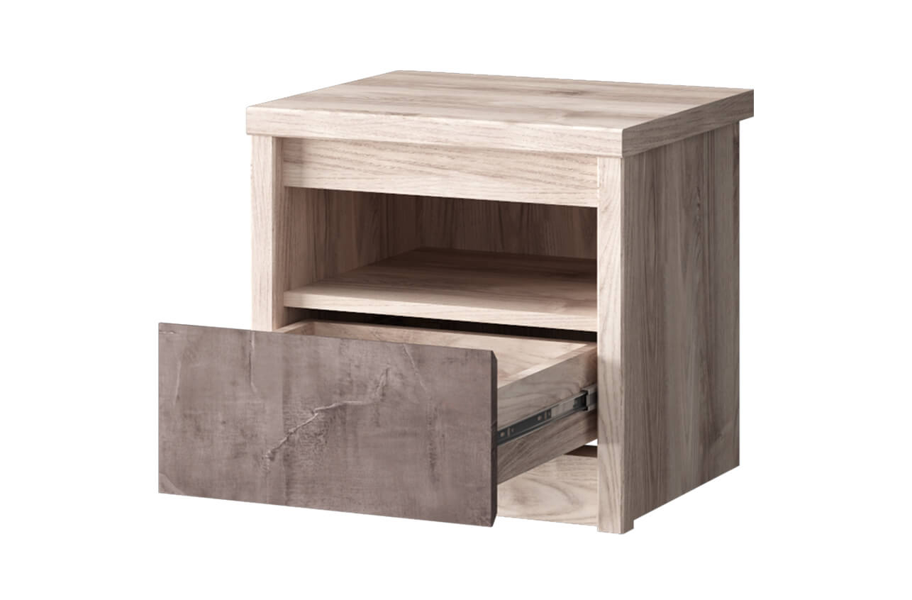 Для удобства открывания ящика на нем установлена внутренняя фрезеровка и шариковые направляющие GTV. Прикроватная тумба JAZZ 1S выполнена в неброском дизайне, поэтому может быть установлена в спальне современного стиля. Ее простая и продуманная конструкция обеспечит удобство хранения и позволит отдыхать в полном комфорте.