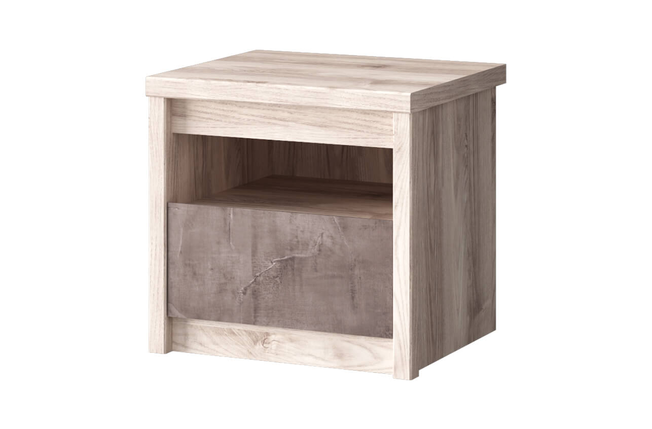 Низкая прикроватная тумба Anrex JAZZ 1S изготовлена в Белоруссии из экологически безопасного материала ЛДСП класса эмиссии Е1. Его поверхность дополнительно покрыта ламинированной пленкой, а на торцы нанесена ПВХ кромка. Благодаря такой отделке, тумбочка приобретает стильный бежевый цвет каштан найроби и серый ящик с отделкой под камень. Такая мебель безопасна в использовании и может быть установлена в детских комнатах.