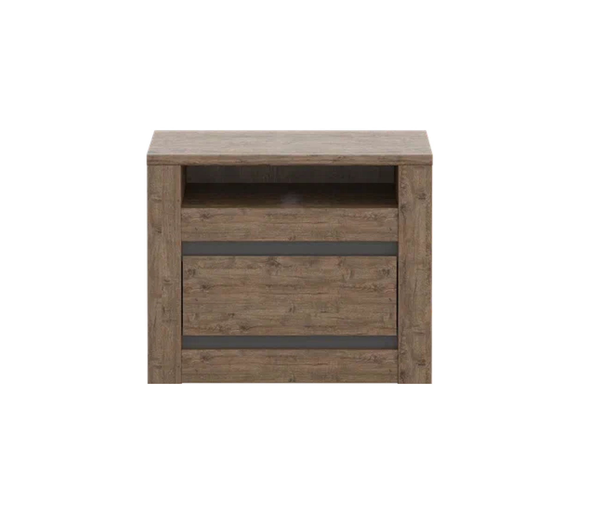 Прикроватная тумба имеет выдвижной ящик, а также верхнюю нишу, в которых удобно размещать все вещи. Просторная верхняя поверхность создаёт дополнительное место для размещения телефона, будильника, очков и много другого, что необходимо всегда иметь под рукой. Ящик оснащен шариковыми направляющими, что обеспечивает возможность полного выдвижения, а также тихое закрытие.