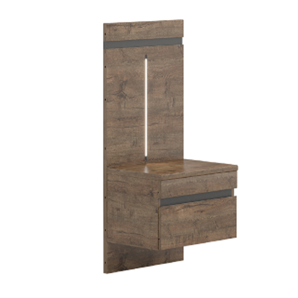 Просторный выдвижной ящик вмещает себя необходимые вещи. Прикроватная тумба имеет подвесную конструкцию, которая крепится к настенной опоре. Опора дополнена декоративной планкой. LED-подсветка создаёт дополнительный источник света. Тумба оснащена системой бесшумного закрывания. Интегрированная ручка удобна в использовании.