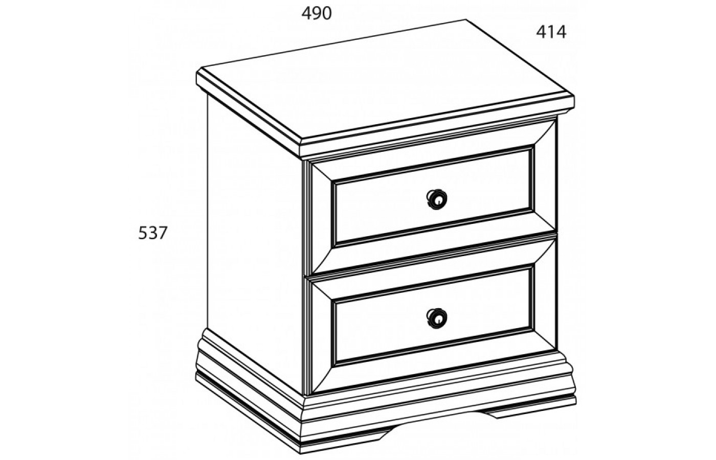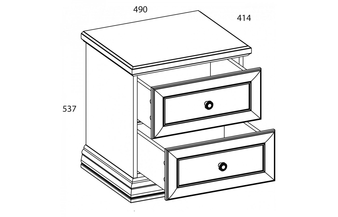 Конструкция тумбы прикроватной 2S прямая, представляет собой два выдвижных ящика, расположенных друг над другом.