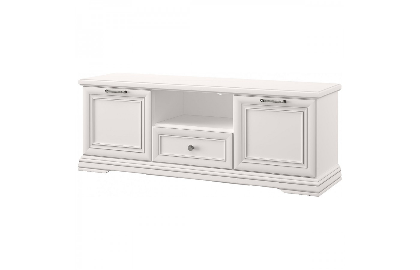 Конструкция тумбы RTV 2D1SN прямая, представляет собой два раздельных отделения с полками ЛДСП за двумя глухими дверями (2D), один выдвижной ящик (1S), ниша под верхним щитом (N) – для организации хранения дополнительной ТВ-техники.