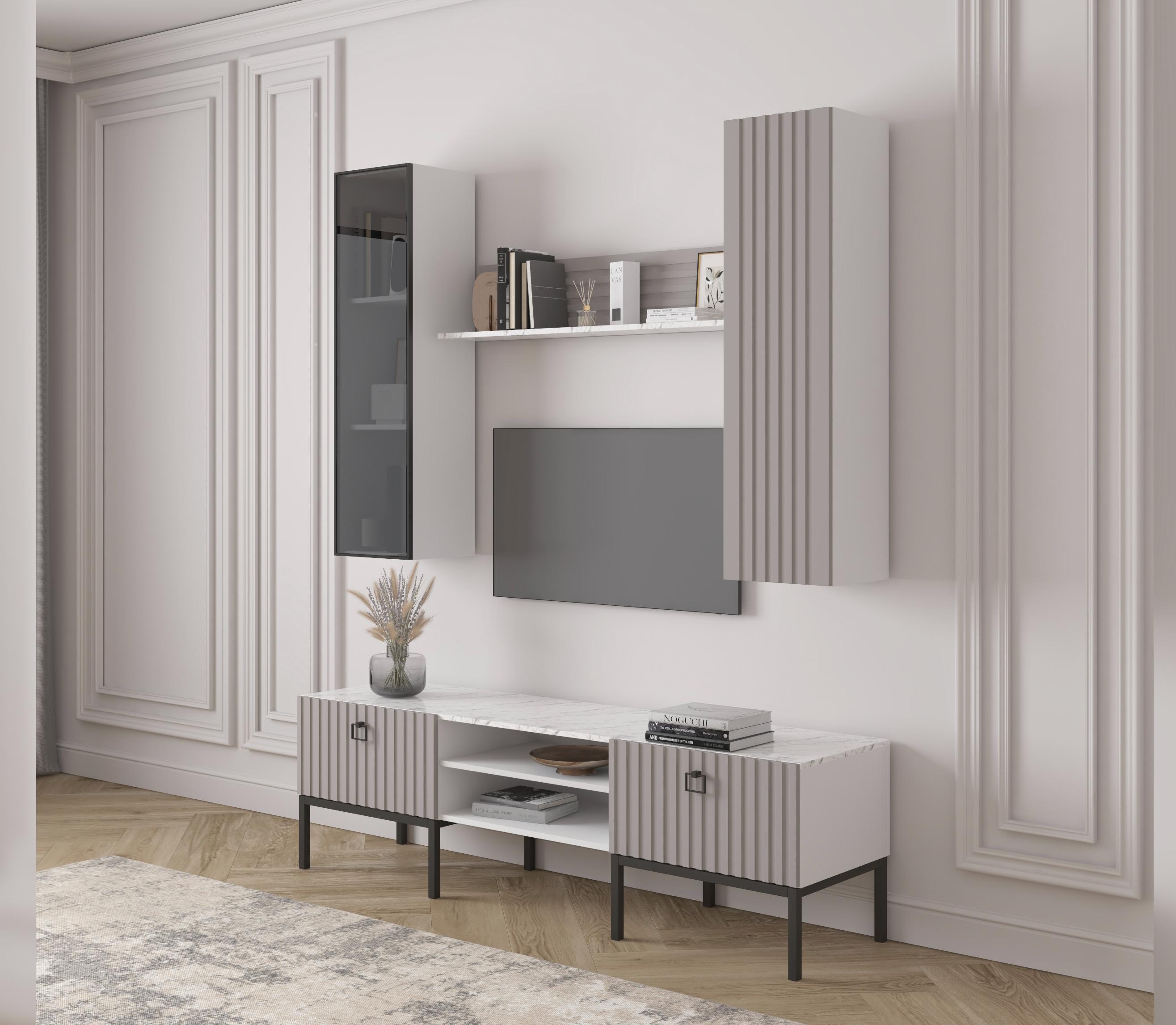 Цвет «Метрополитан Грей/Белый» придаёт изделию благородный вид и визуально расширяет пространство гостиной, делая её более светлой и просторной.