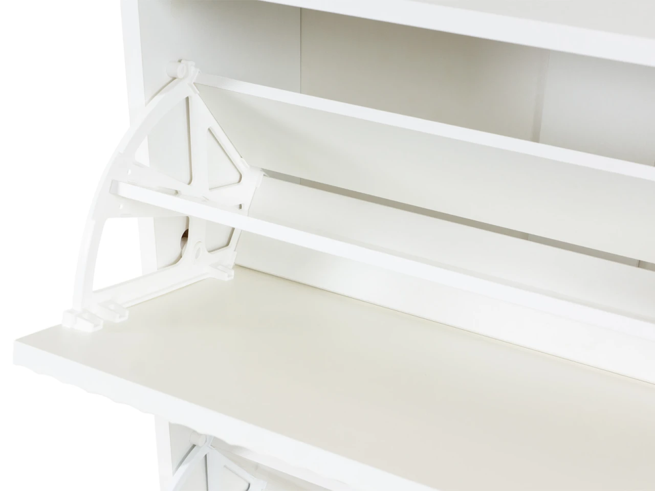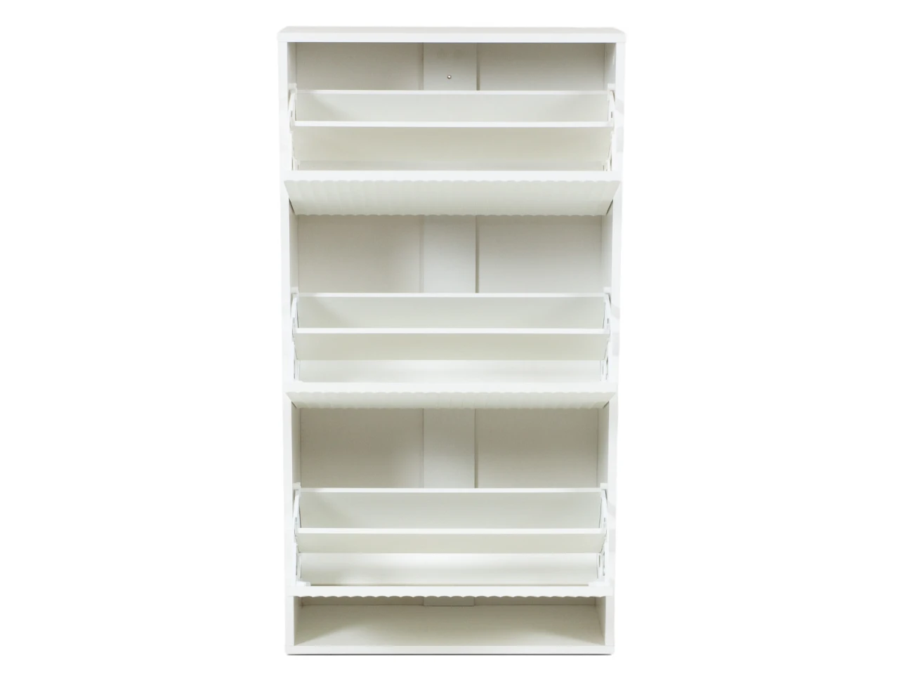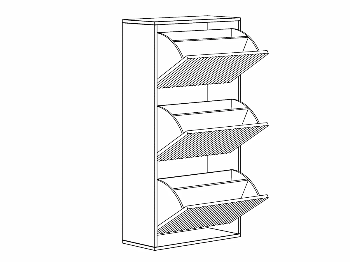 Обувница Campo представляет собой корпус с тремя откидными фасадами, на каждом из которых установлено отделение для хранения обуви в два ряда.