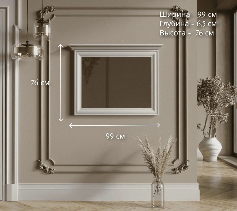 Настенное зеркало помогает визуально расширить пространство, что особенно важно для небольших комнат. Благодаря настенному креплению модель экономит место и гармонично вписывается в интерьер.
