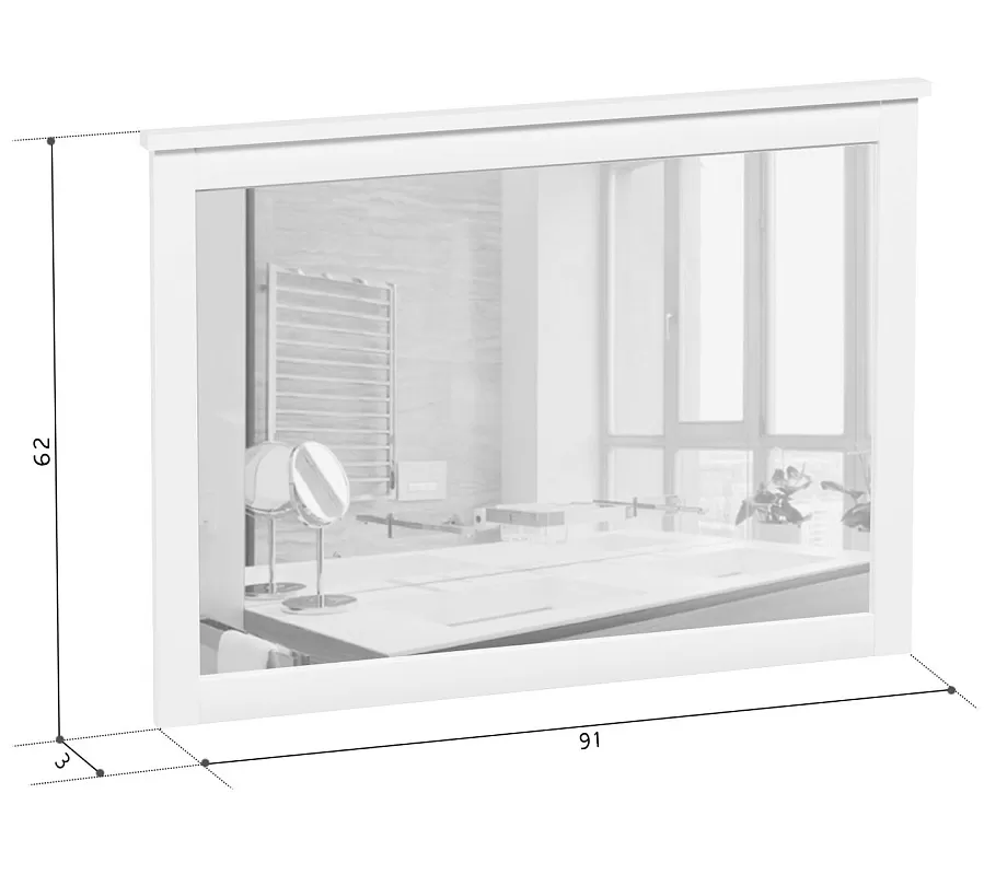 Белое зеркало Helga с шириной 91 см и высотой 62 см гармонично впишется в интерьер с любой площадью.