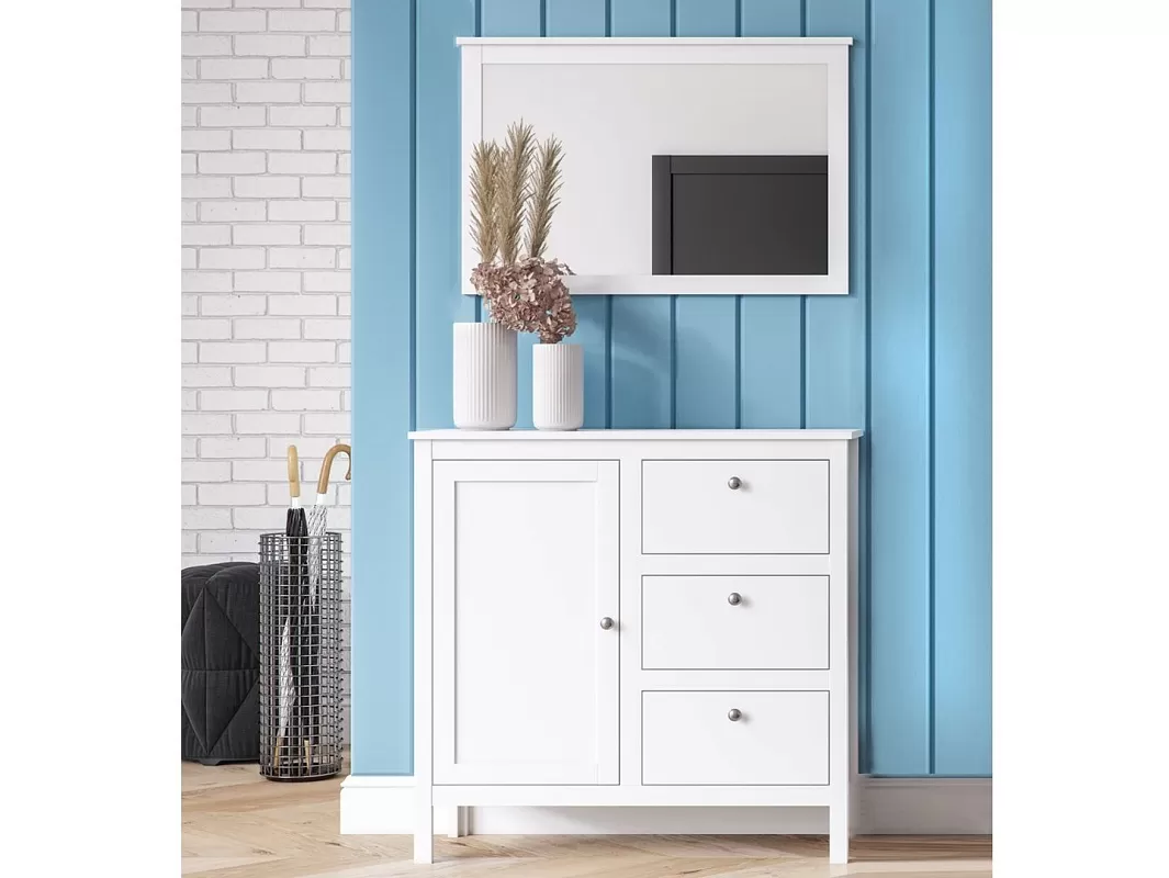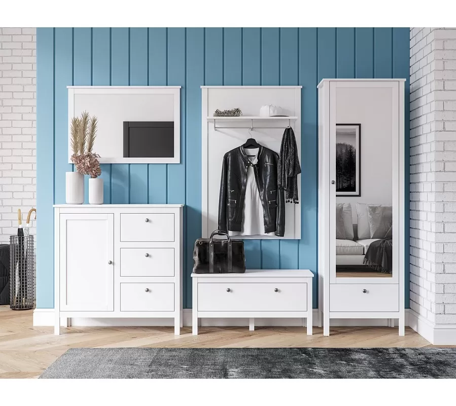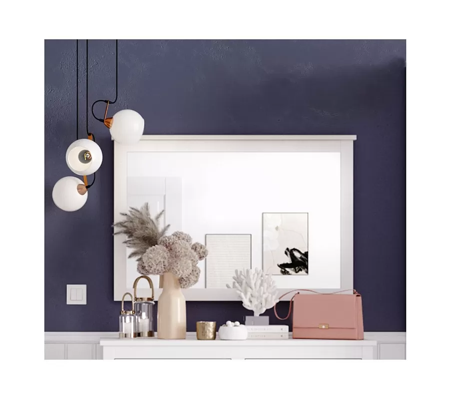 Жители Скандинавии украшали дом исключительно безопасными материалами. Белорусский производитель BRW использовал при изготовлении белого настенного зеркала Helga бюджетные заменители древесины ЛДСП и МДФ. В надежности и долговечности они не уступают натуральному материалу и смотрятся естественно.