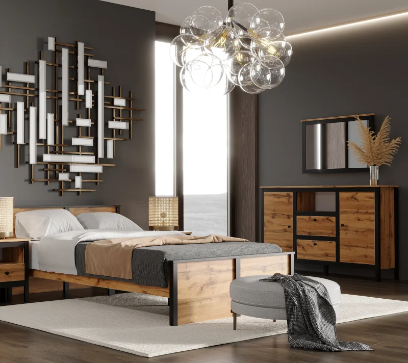 Зеркало Loft дуб вотан LUS/90 гармонично смотрится над тумбой-комодом из коллекции Loft.