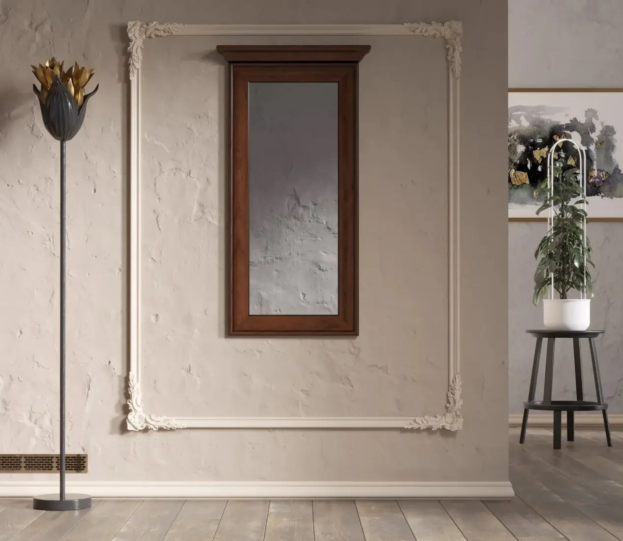 Белое зеркало высотой 110 см и шириной 58,5 см можно установить в любой жилой комнате над комодом, тумбой, туалетным столиком или банкеткой. Используйте его в спальнях и прихожих классического стиля, современных гостиных и в интерьерах неоклассики. Еще удлиненное зеркало – практичный и удобный вариант для гардеробной. Оно позволит приводить себя в порядок перед уходом и выглядеть аккуратно в домашней обстановке.